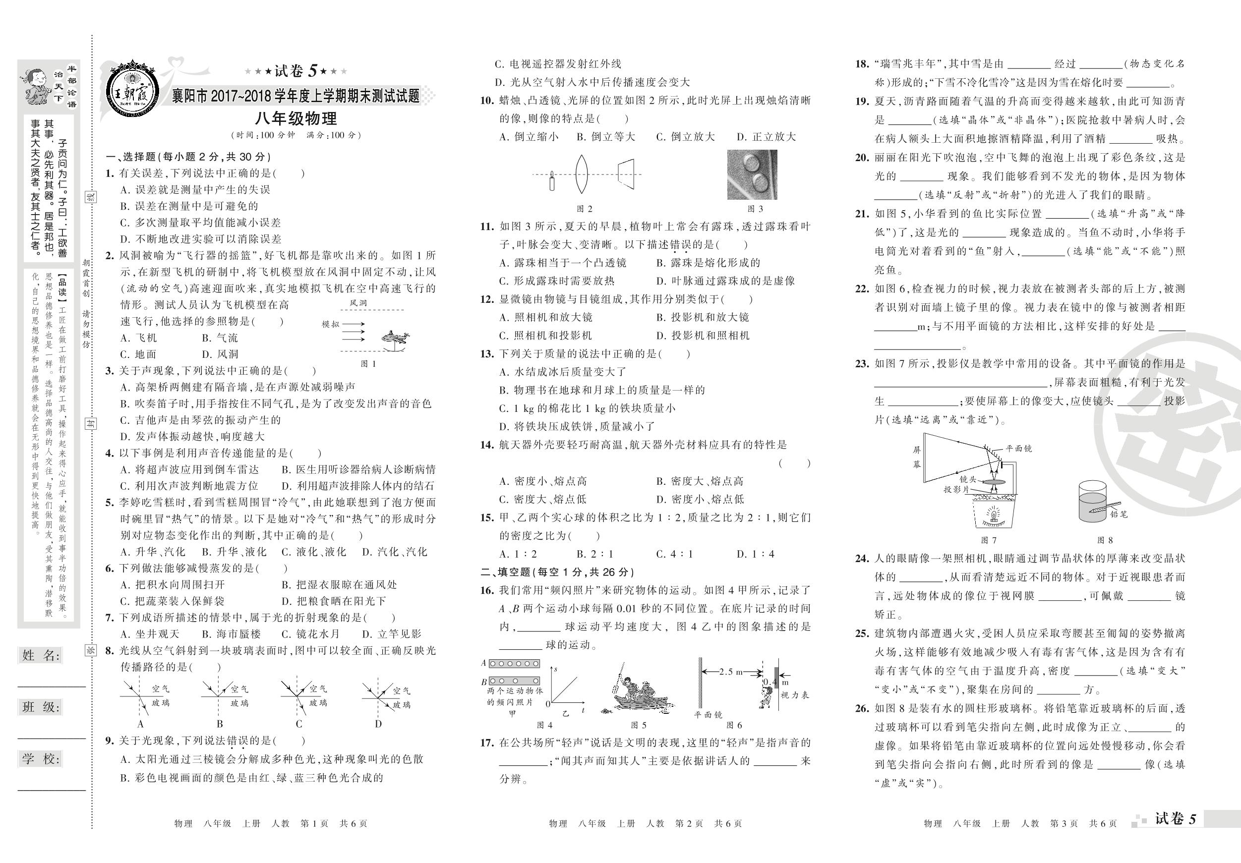 2017-2018学年第一学期襄阳市八年级物理试卷(人教版)【5】
