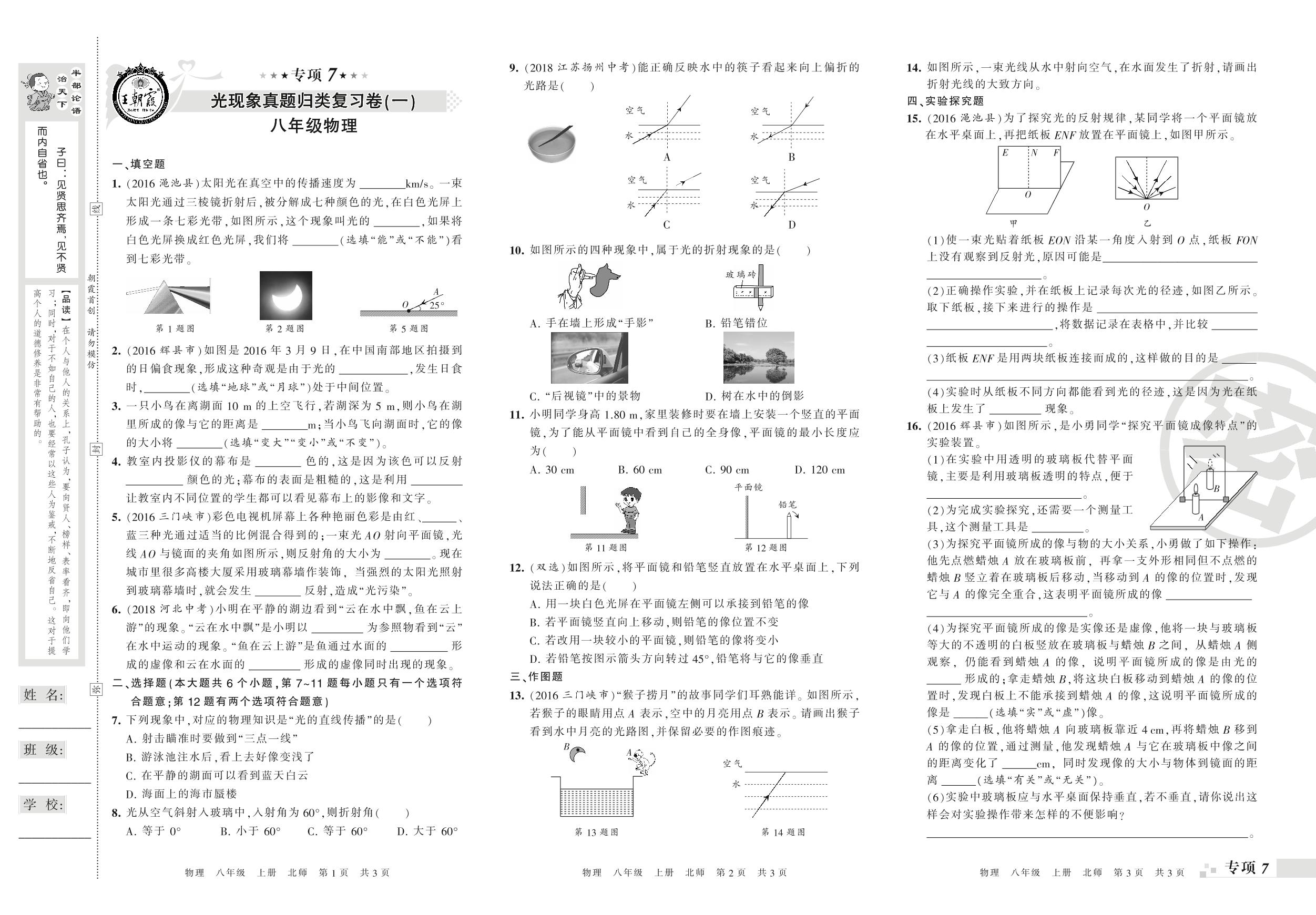 王朝霞期末专项卷——光现象(一)(二)真题归类复习卷八年级上册物理(北师版)_R210810191135【0】