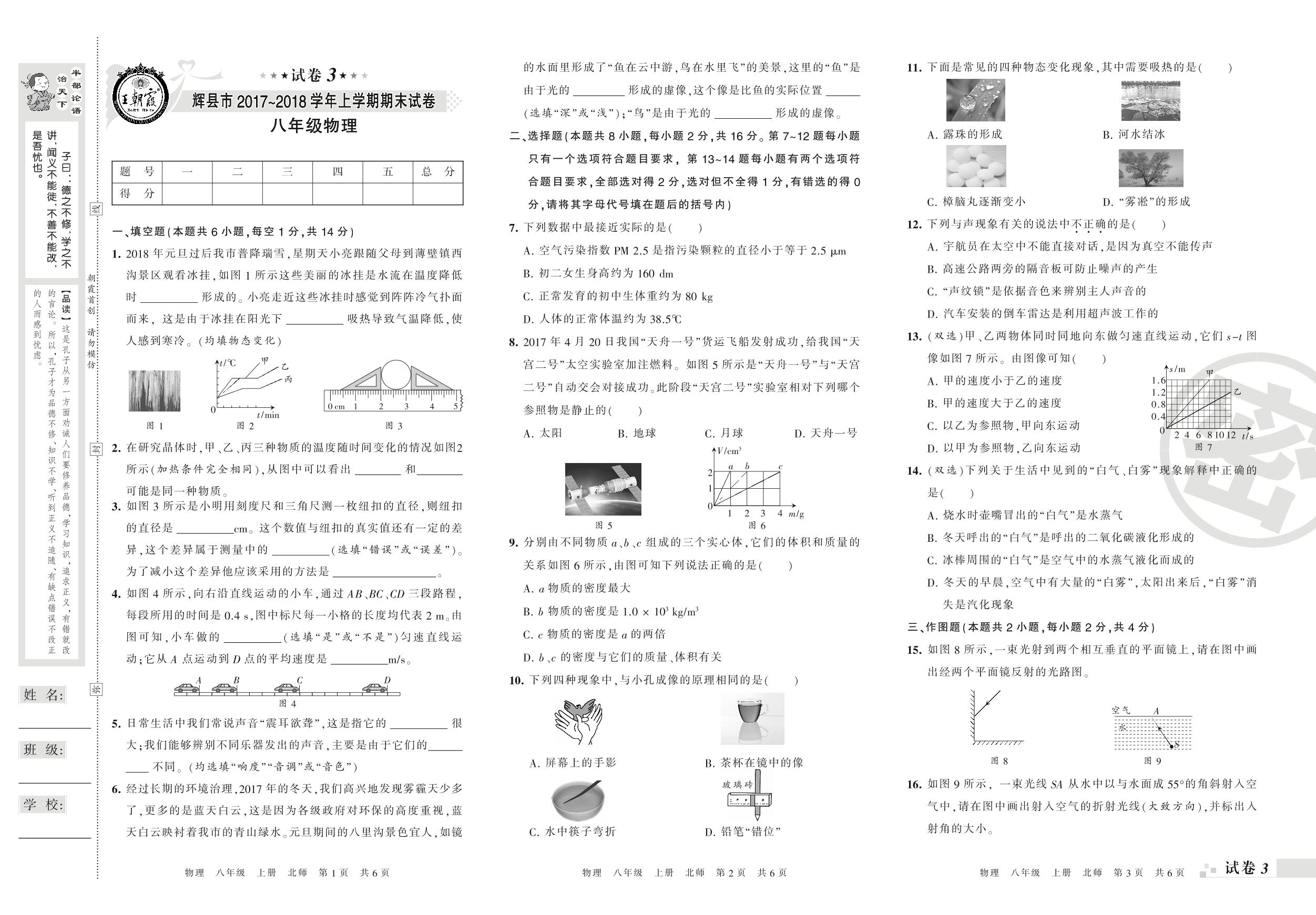 2017-2018学年第一学期辉县市八年级物理试卷(北师版)【3】
