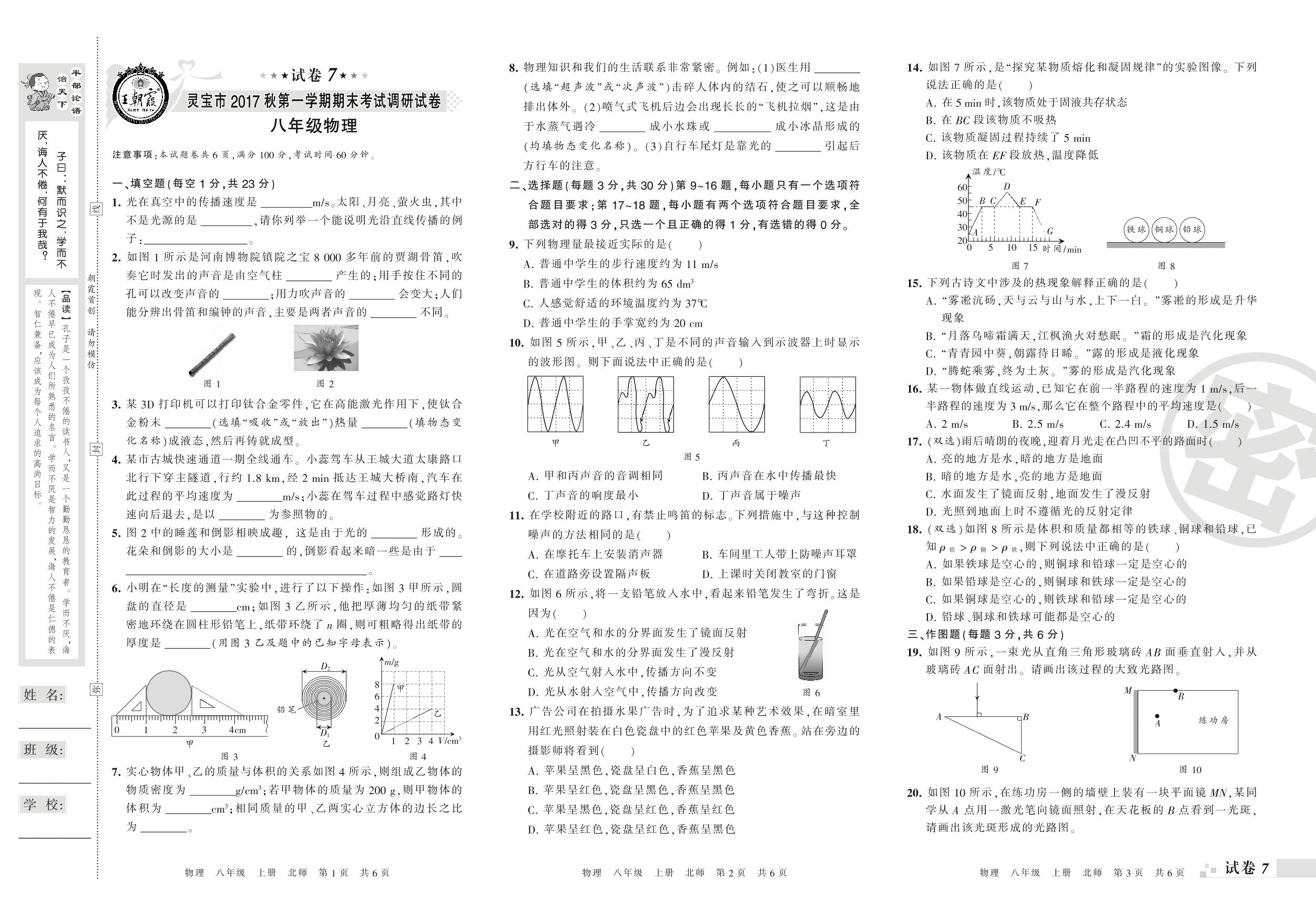 2017-2018学年第一学期灵宝市八年级物理试卷(北师版)【7】