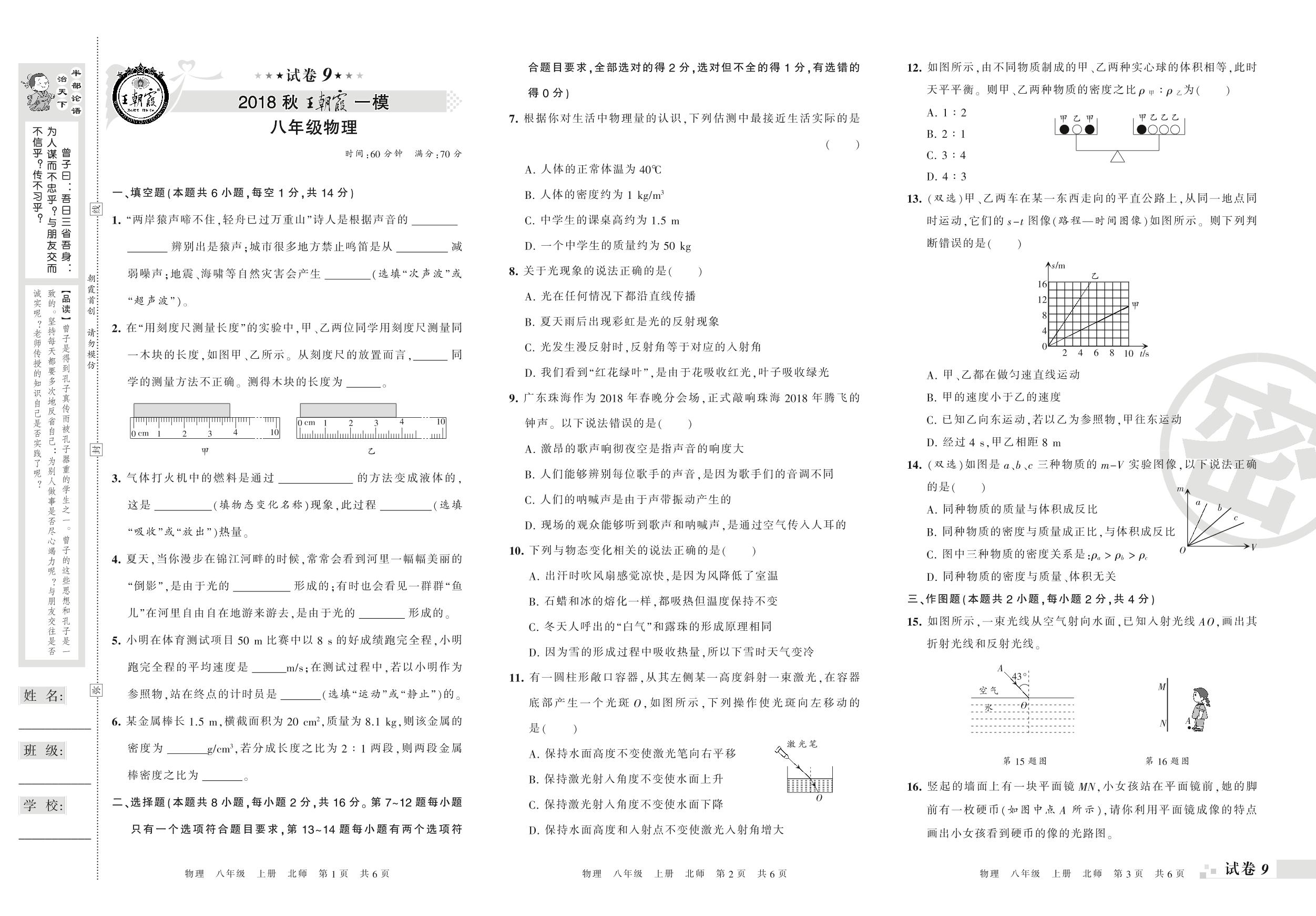 王朝霞期末模拟卷八年级上册物理(北师版)_R210810191228【9】
