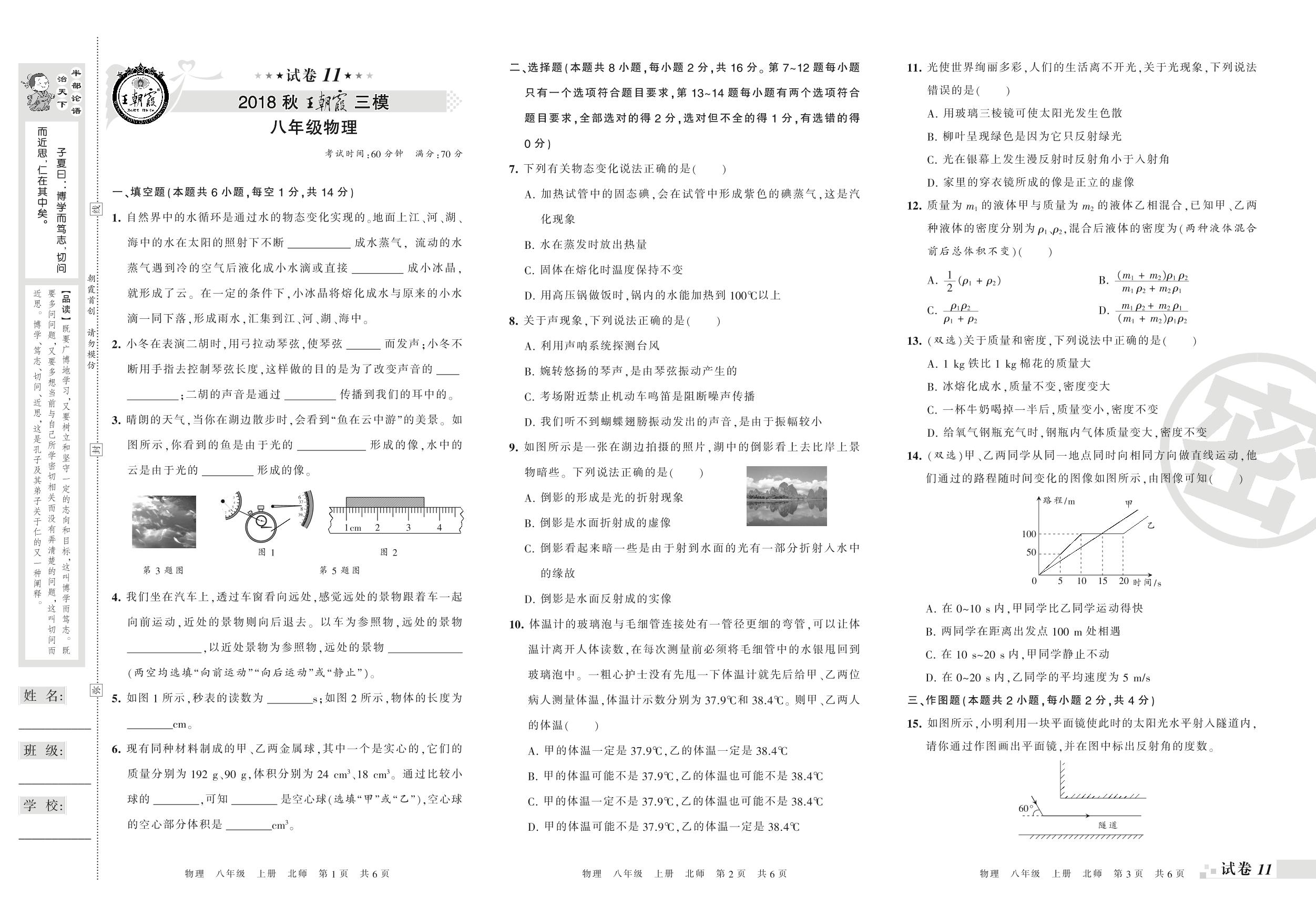 王朝霞期末模拟卷八年级上册物理(北师版)_R210810191249【11】