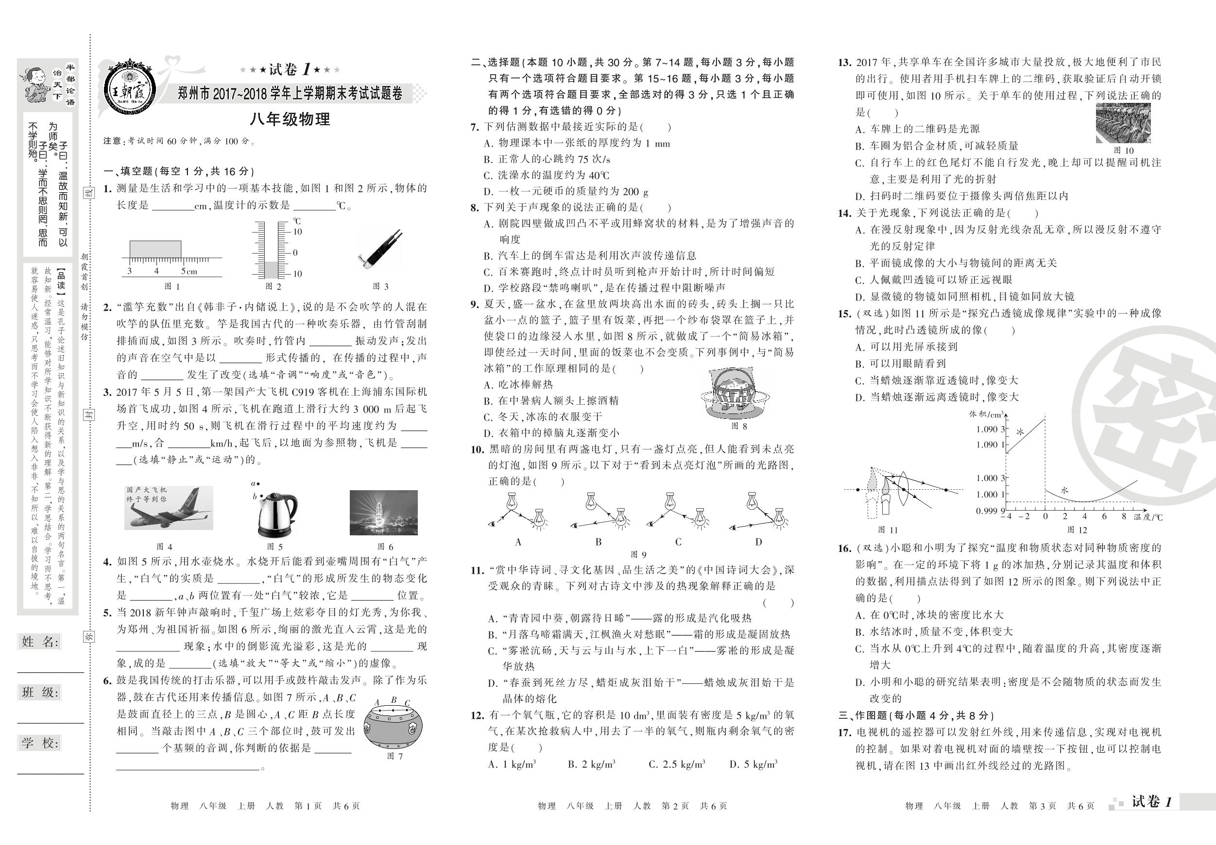 2017-2018学年第一学期郑州市八年级物理试卷(人教版)_R210810191310【1】