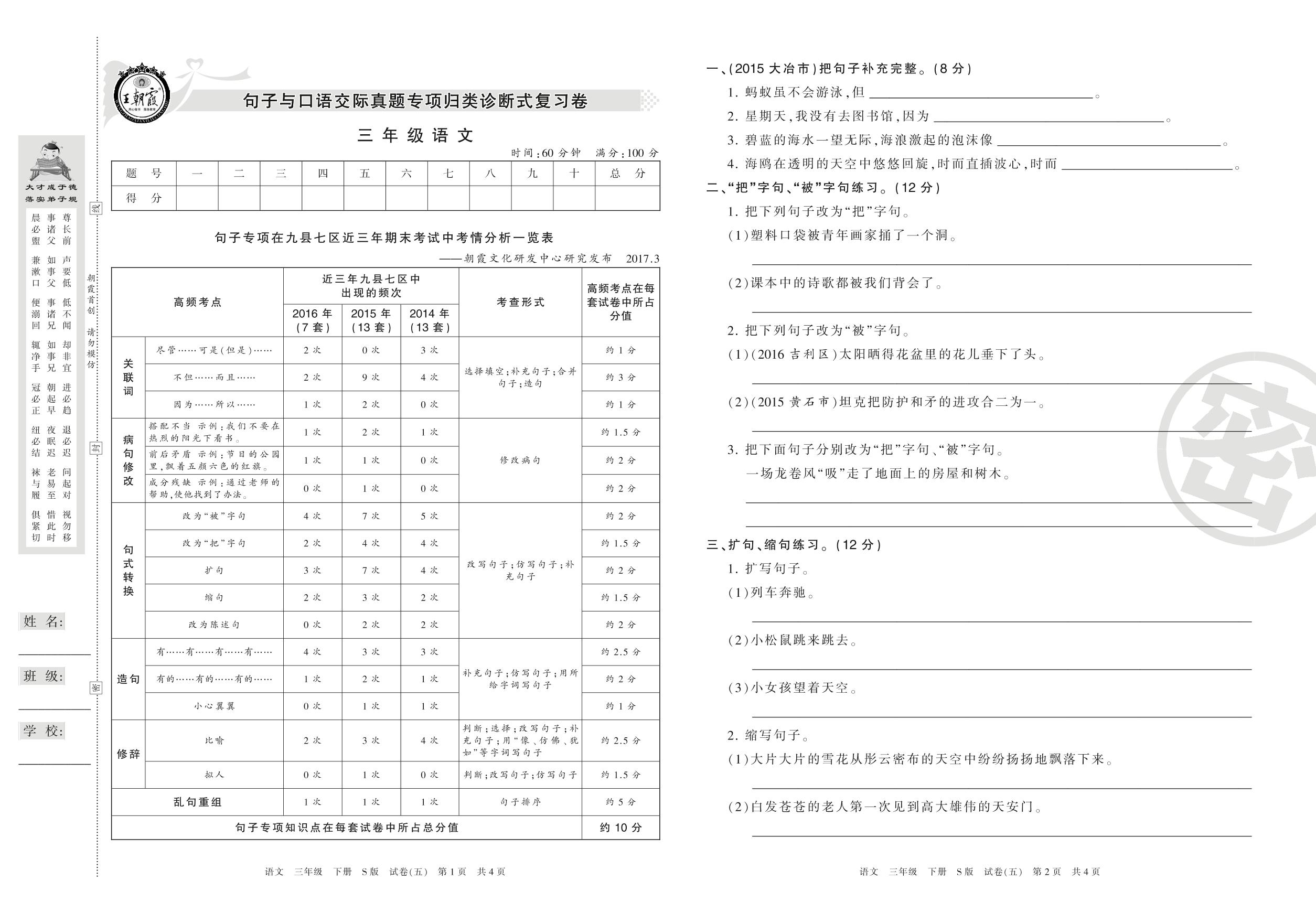 王朝霞期末专项卷三年级下册语文(S版)_R21080194157【5】