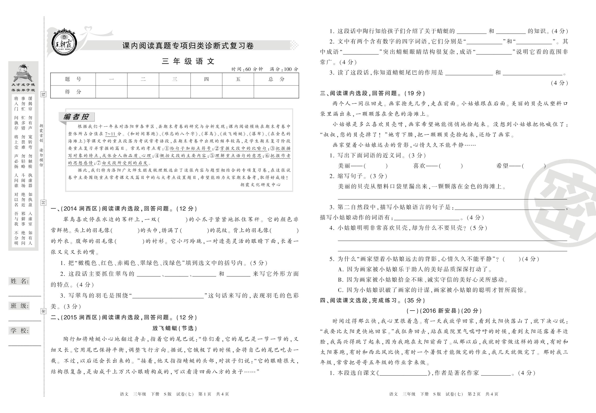 王朝霞期末专项卷三年级下册语文(S版)_R21080194203【7】