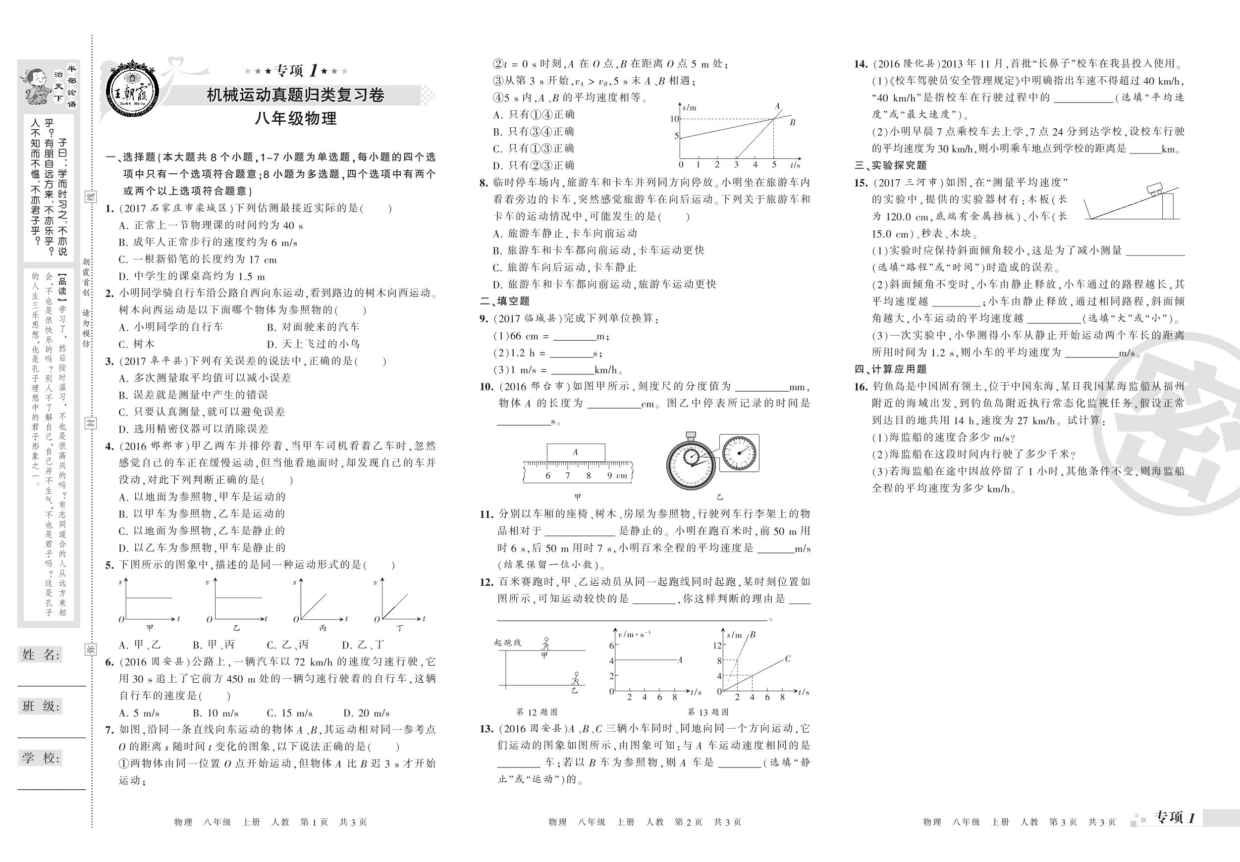王朝霞期末专项卷——机械运动、声现象真题归类复习卷八年级上册物理(人教版)_R210810192142【0】