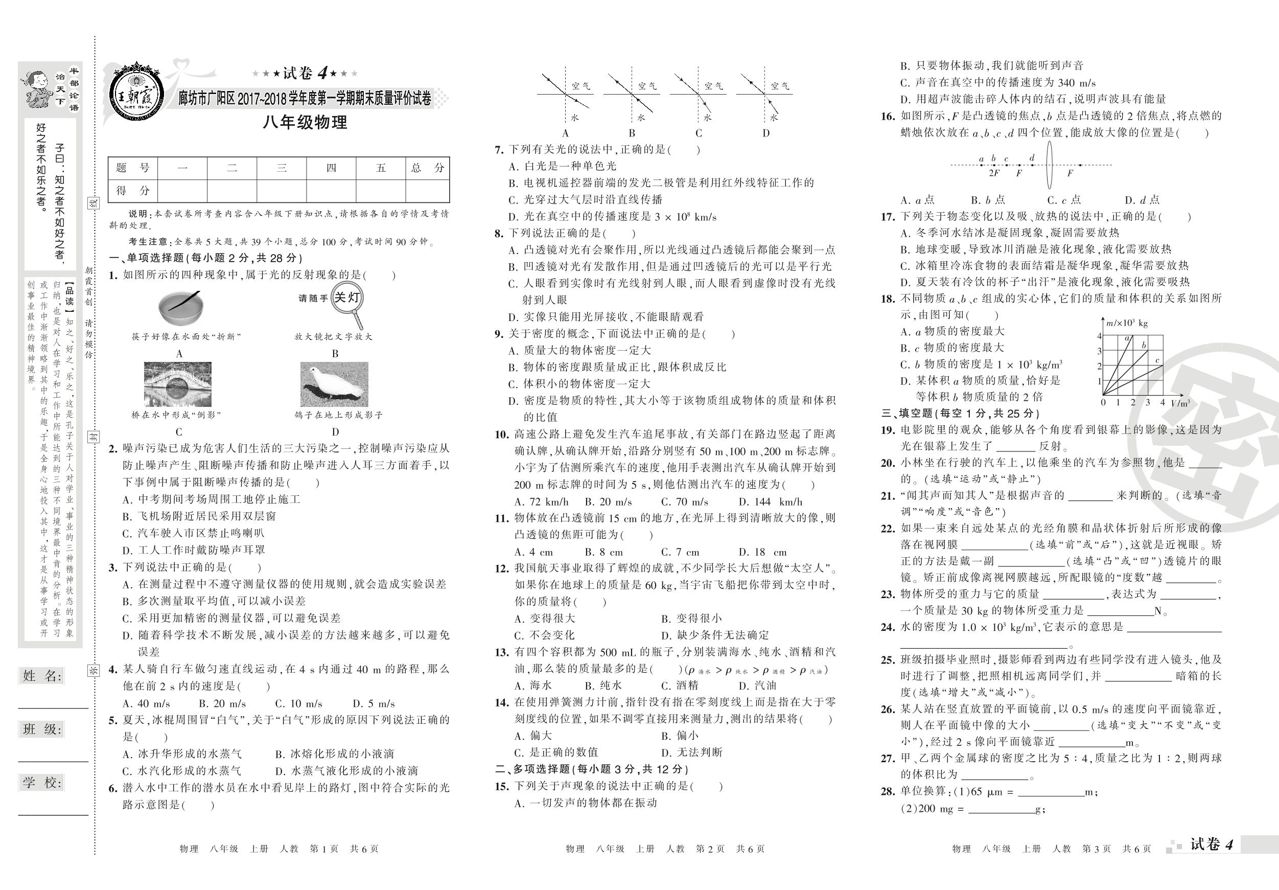 2017-2018学年第一学期廊坊市广阳区八年级物理试卷(人教版)【4】