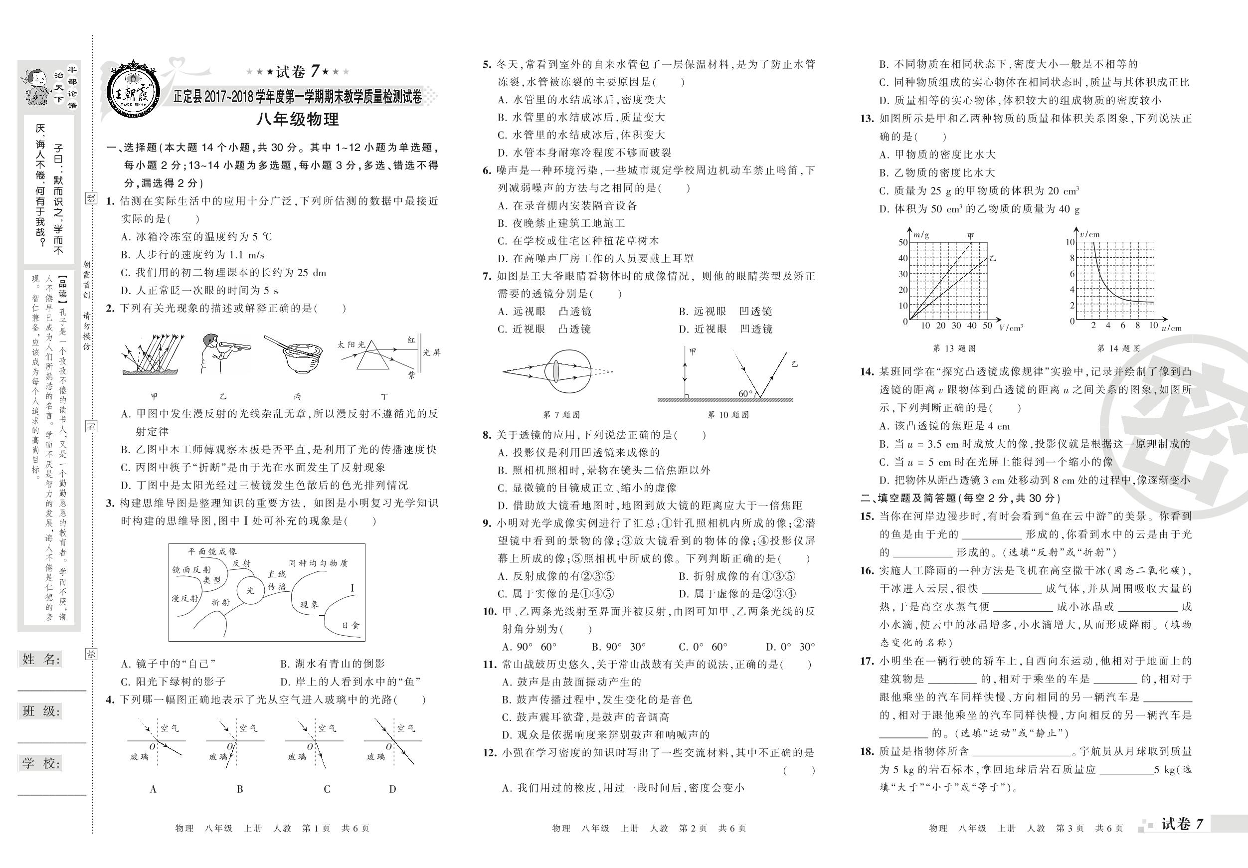 2017-2018学年第一学期石家庄市正定县八年级物理试卷(人教版)【7】