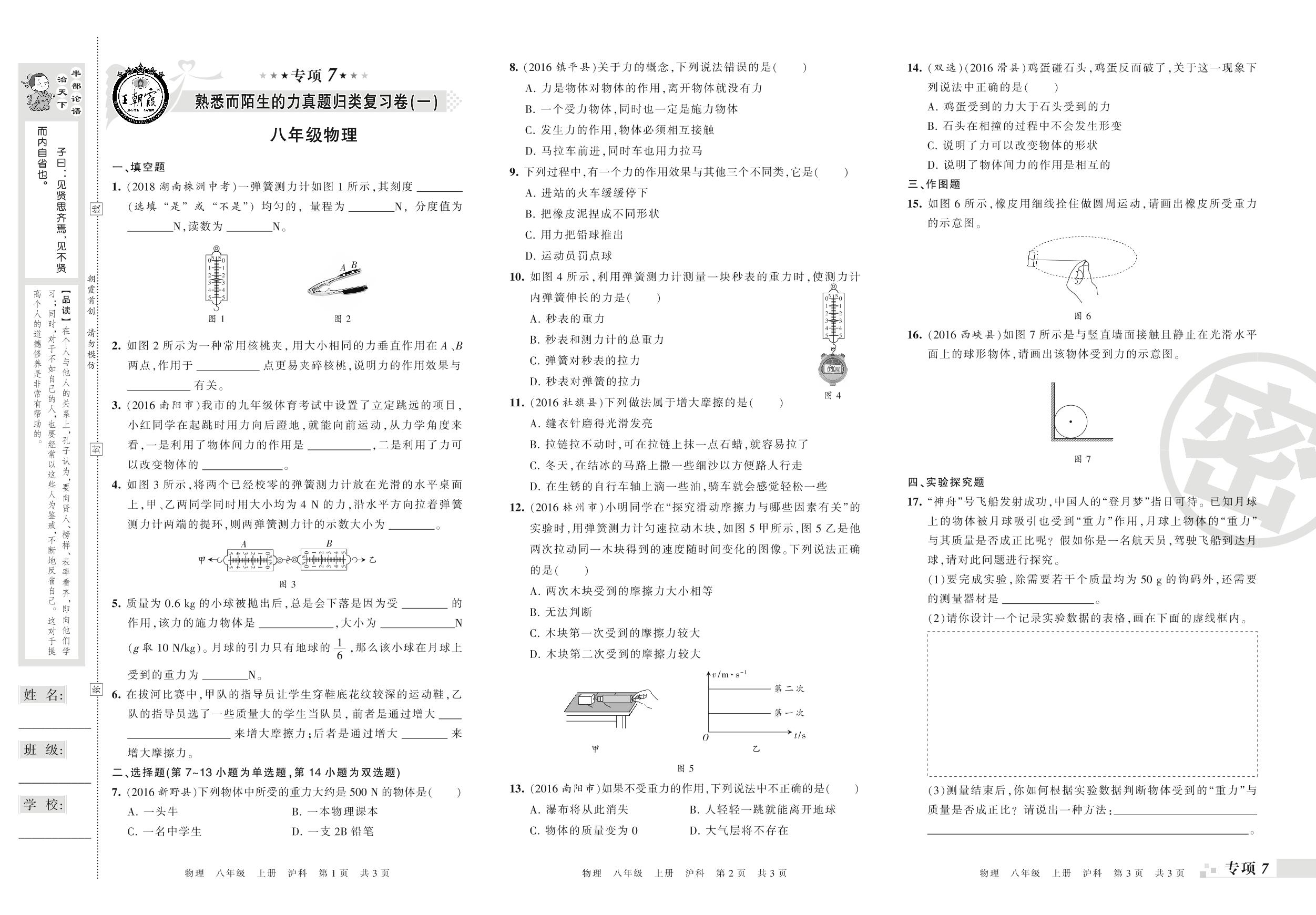 王朝霞期末专项卷——熟悉而陌生的力(一)(二)真题归类复习卷八年级上册物理(沪科版)_R210810192615【0】