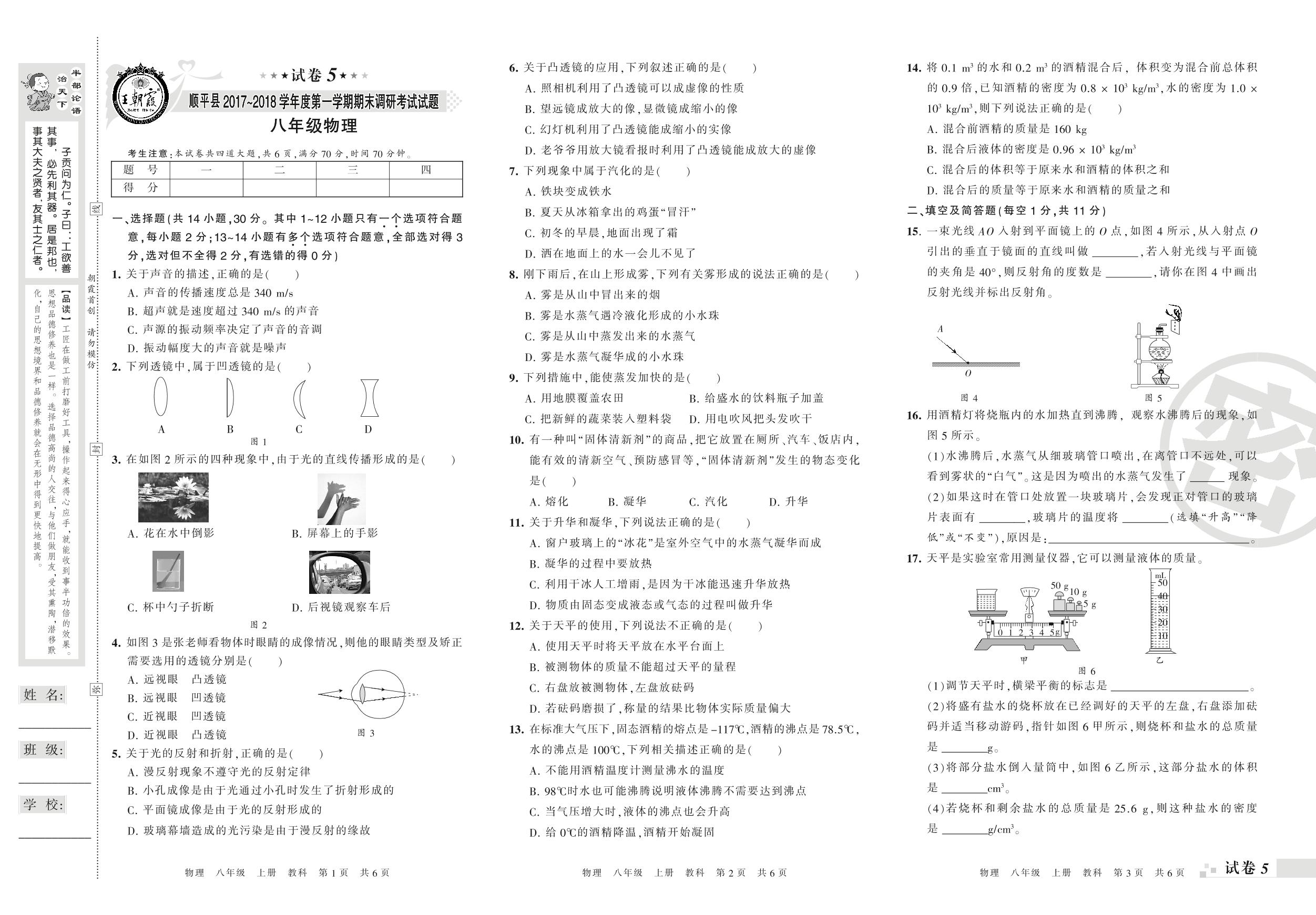 2017-2018学年第一学期保定市顺平县八年级物理试卷(教科版)【5】