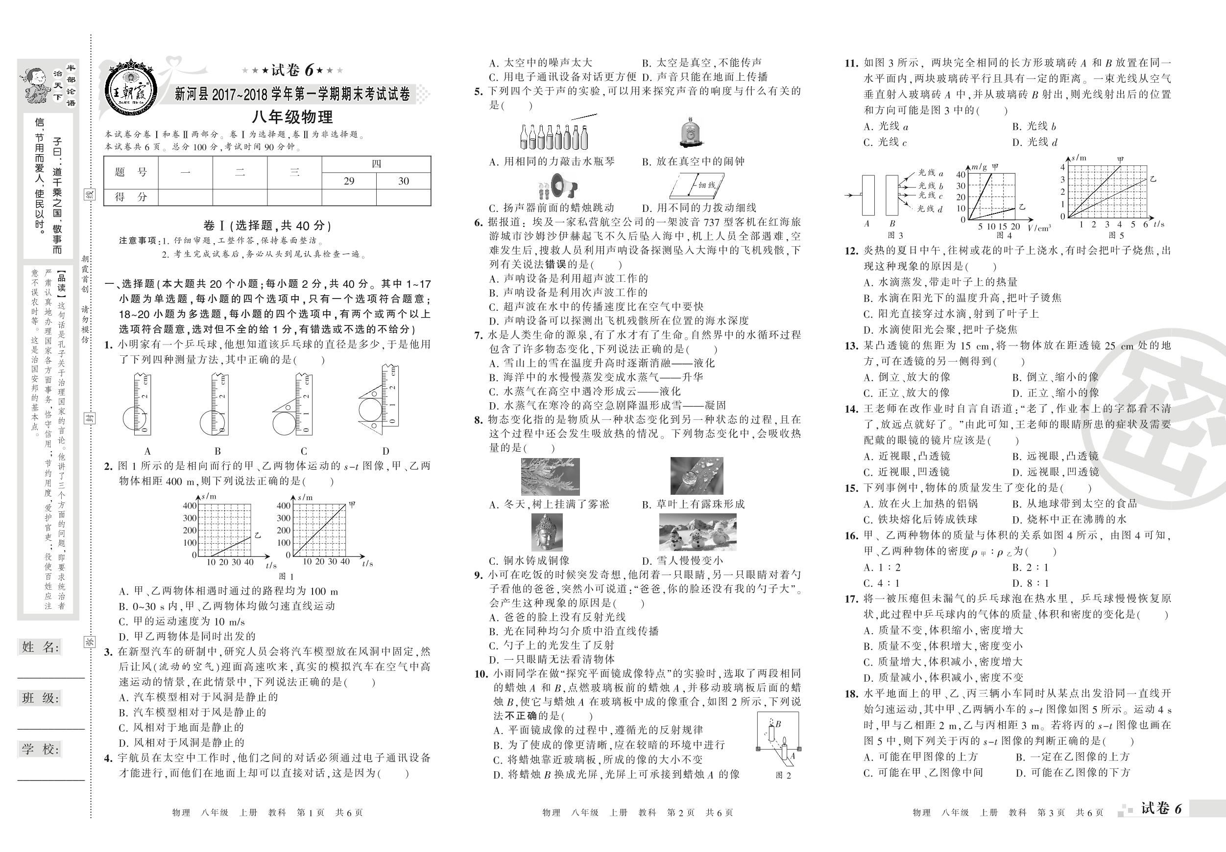 2017-2018学年第一学期邢台市新河县八年级物理试卷(教科版)【6】