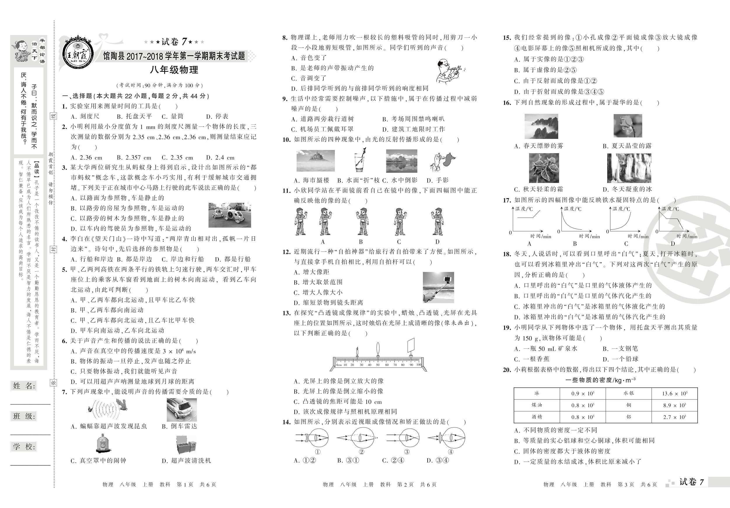 2017-2018学年第一学期邯郸市馆陶县八年级物理试卷(教科版)【7】