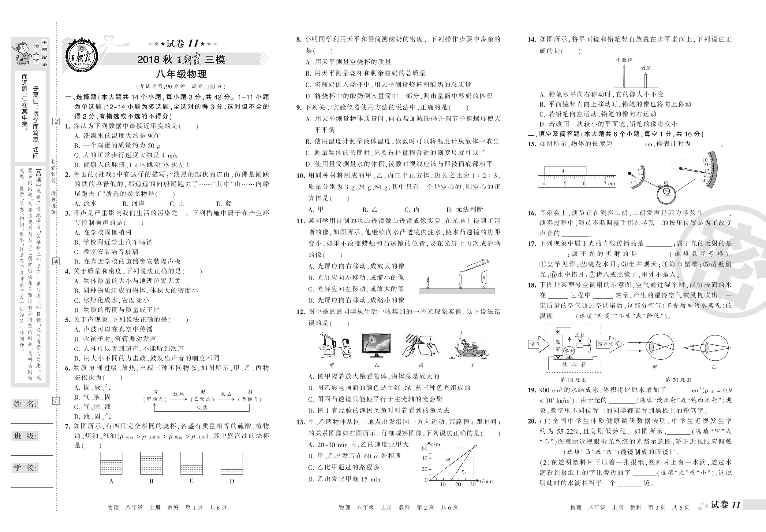 王朝霞期末模拟卷八年级上册物理(教科版)_R210810192901【11】
