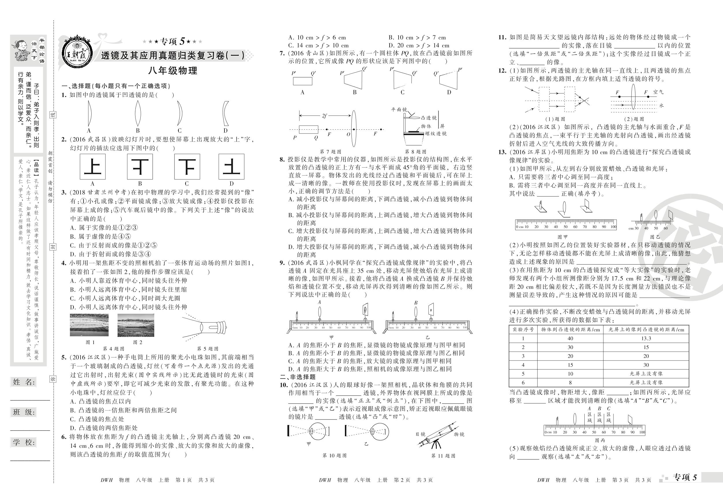 王朝霞期末专项卷——透镜及其应用(一)(二)真题归类复习卷八年级上册物理(人教版)_R210810192929【0】