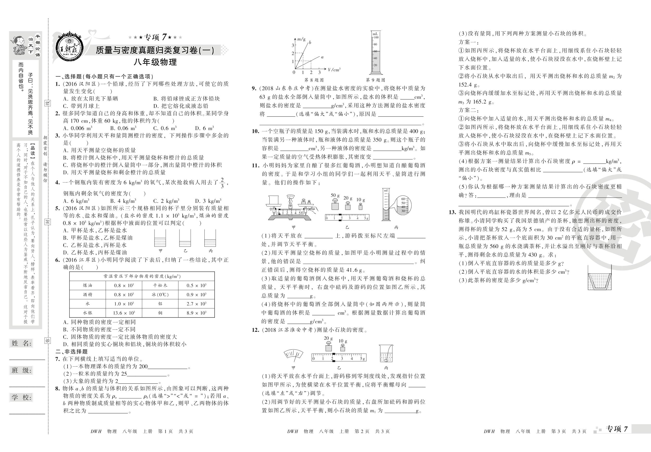 王朝霞期末专项卷——质量与密度(一)(二)真题归类复习卷八年级上册物理(人教版)_R210810192937【0】