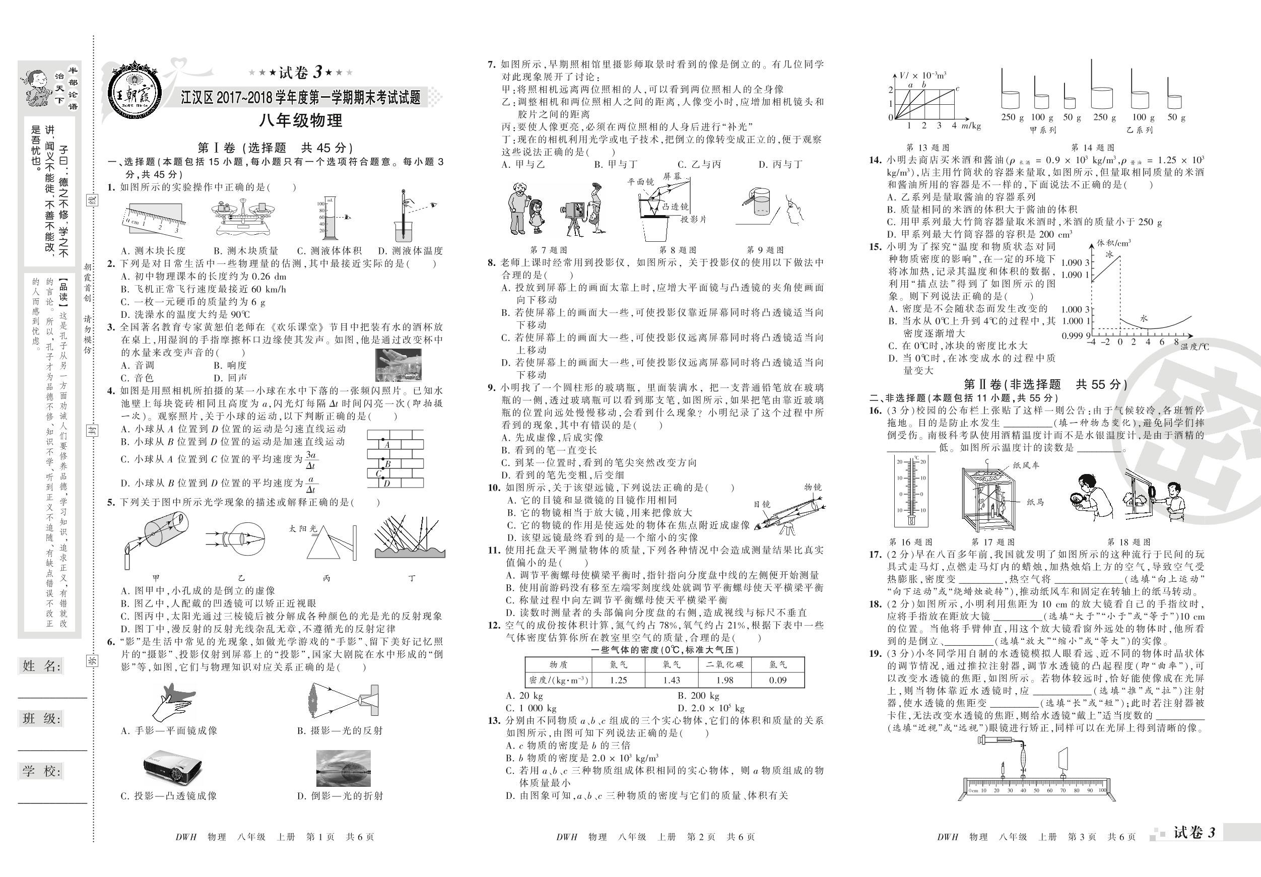 2017-2018学年第一学期武汉市江汉区八年级物理试卷(人教版)【3】