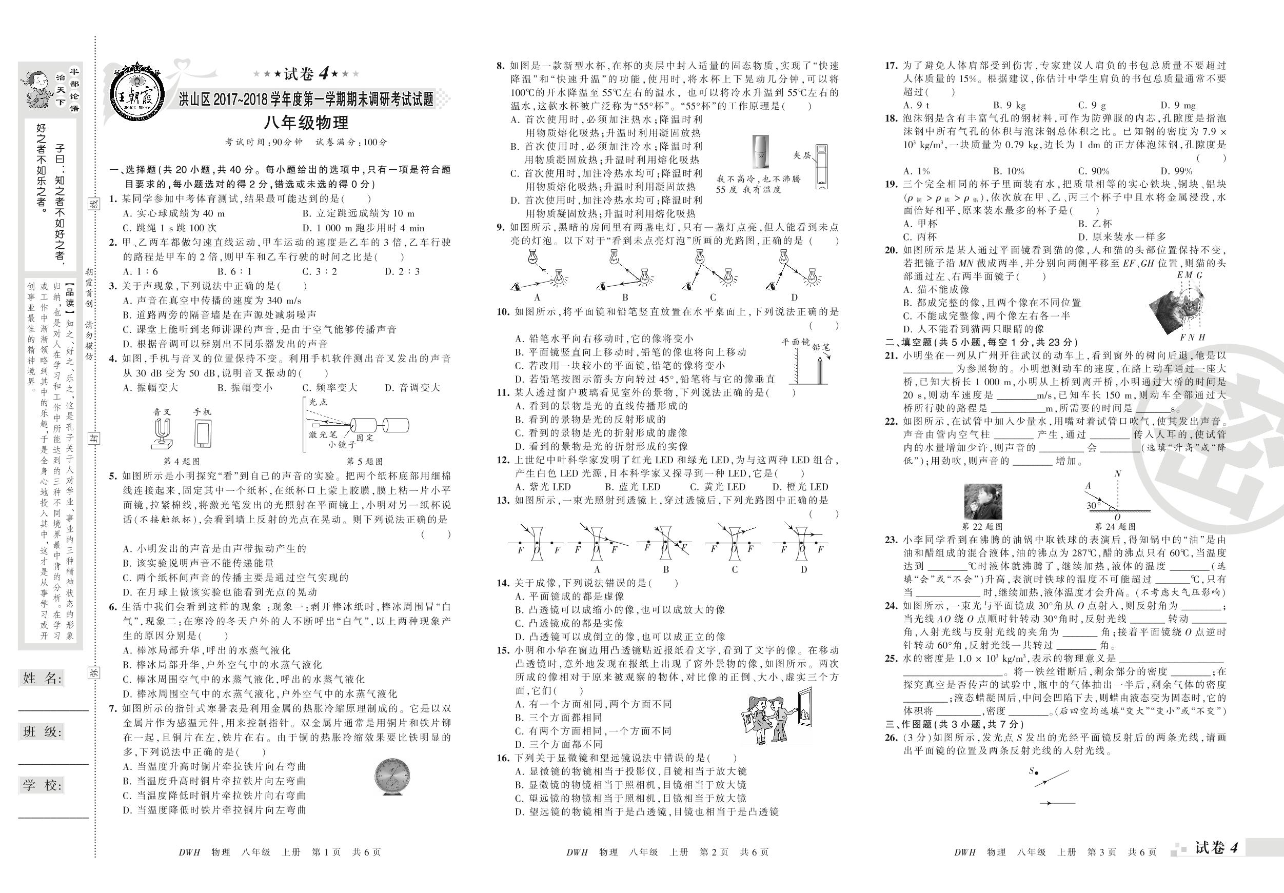 2017-2018学年第一学期武汉市洪山区八年级物理试卷(人教版)【4】