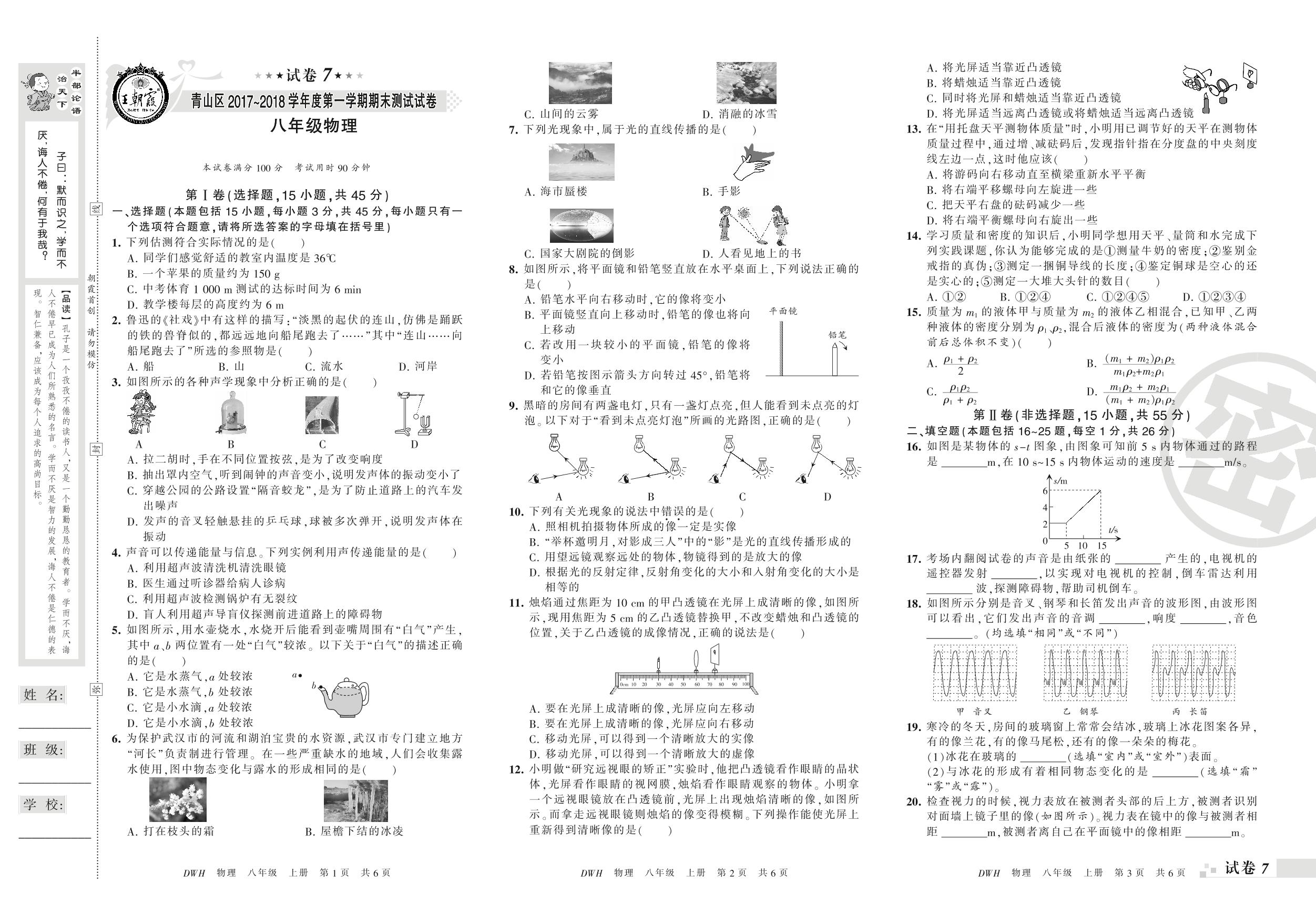 2017-2018学年第一学期武汉市青山区八年级物理试卷(人教版)【7】