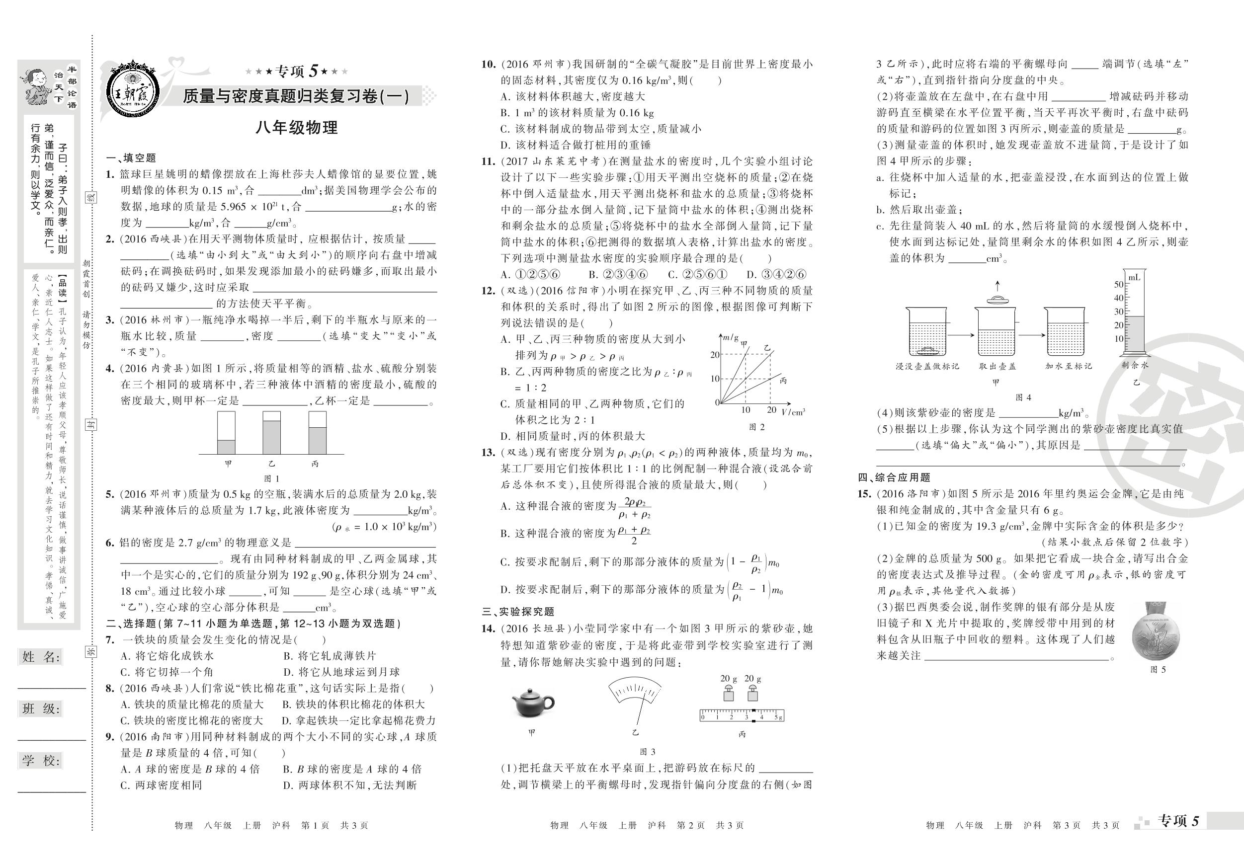 王朝霞期末专项卷——质量与密度(一)(二)真题归类复习卷八年级上册物理(沪科版)_R210810193226【0】