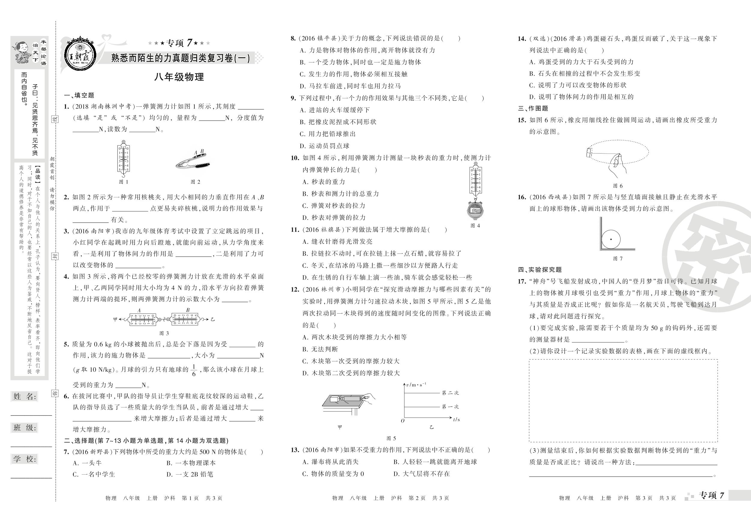 王朝霞期末专项卷——熟悉而陌生的力(一)(二)真题归类复习卷八年级上册物理(沪科版)_R210810193233【0】