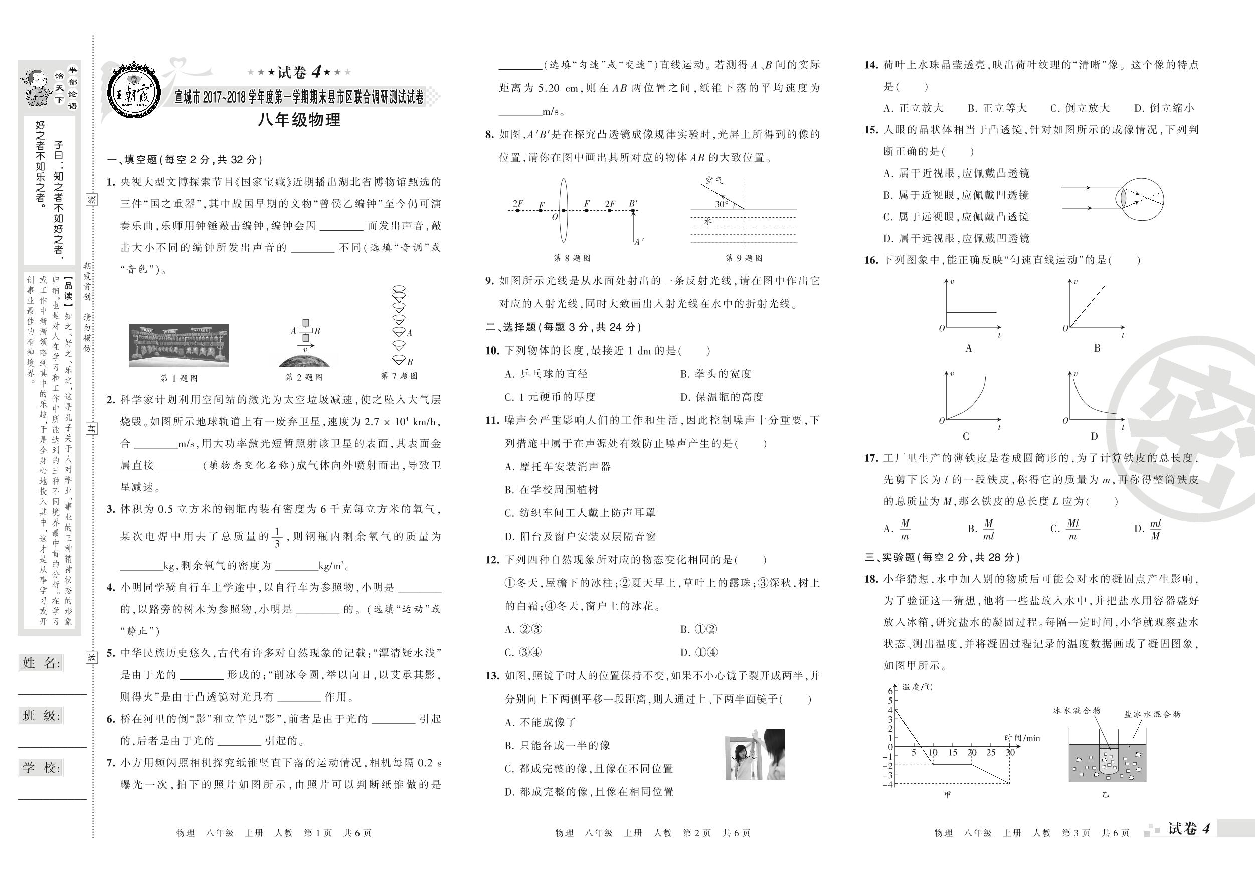 2017-2018学年第一学期宣城市八年级物理试卷(人教版)【4】