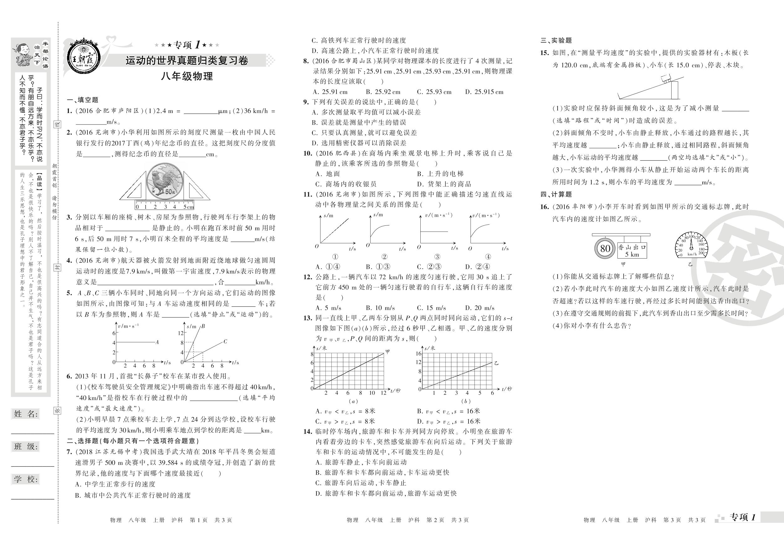 王朝霞期末专项卷——运动的世界、声的世界真题归类复习卷八年级上册物理(沪科版)_R210810193949【0】