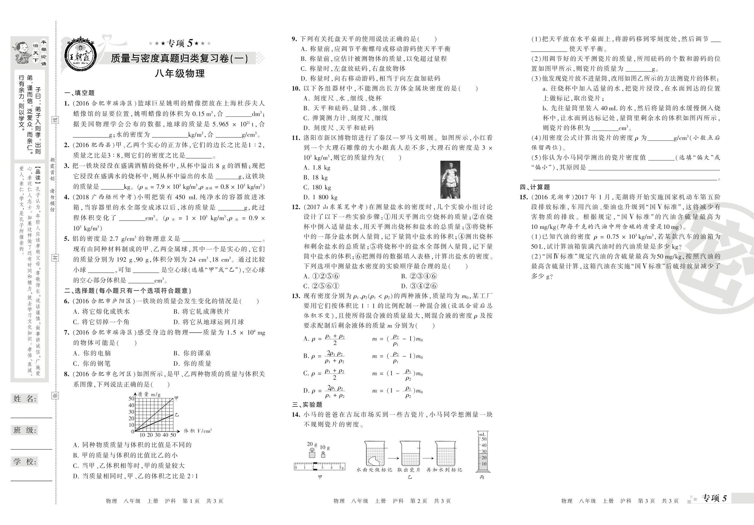 王朝霞期末专项卷——质量与密度(一)(二)真题归类复习卷八年级上册物理(沪科版)_R210810194020【0】