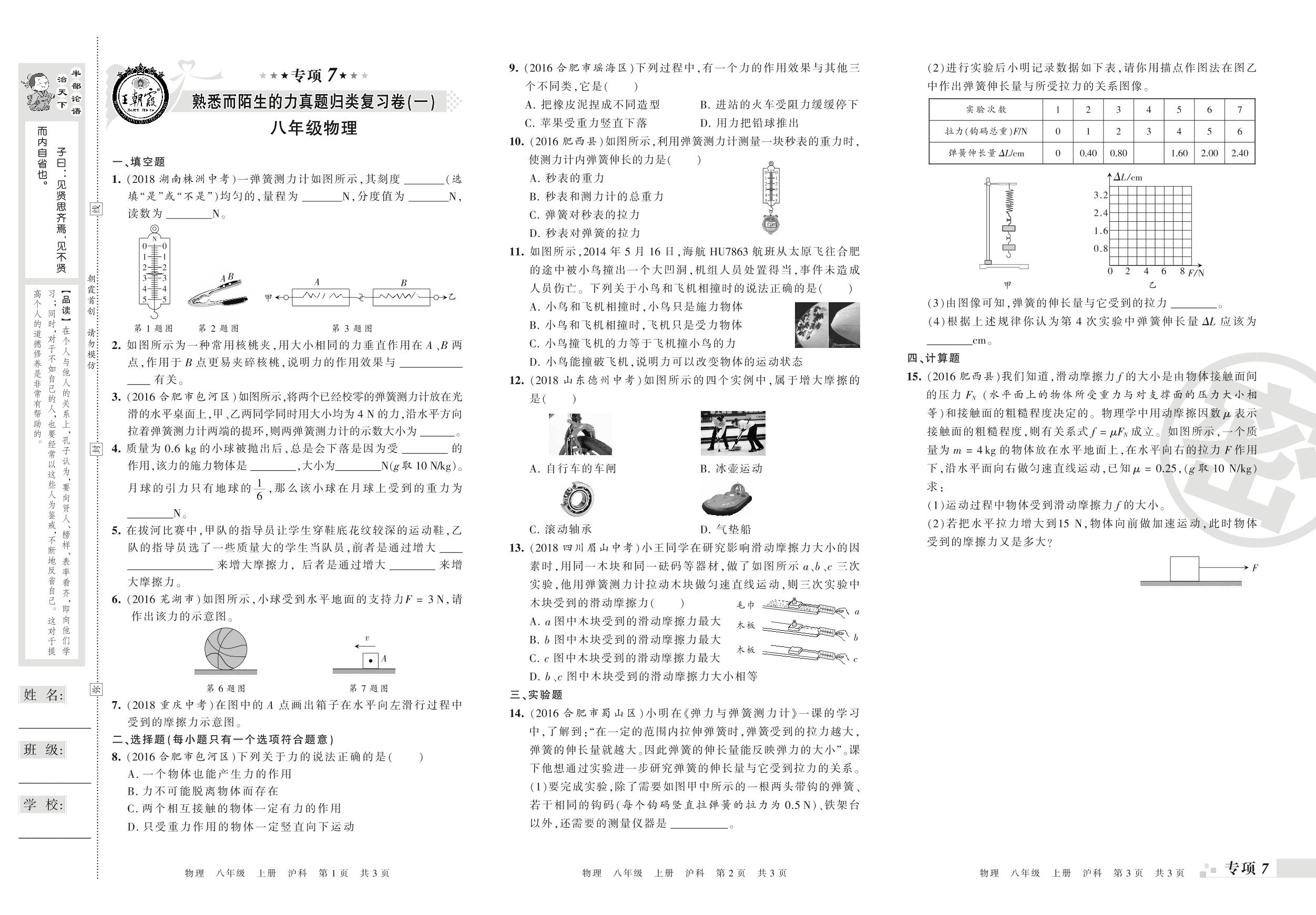 王朝霞期末专项卷——熟悉而陌生的力(一)(二)真题归类复习卷八年级上册物理(沪科版)_R210810194035【0】