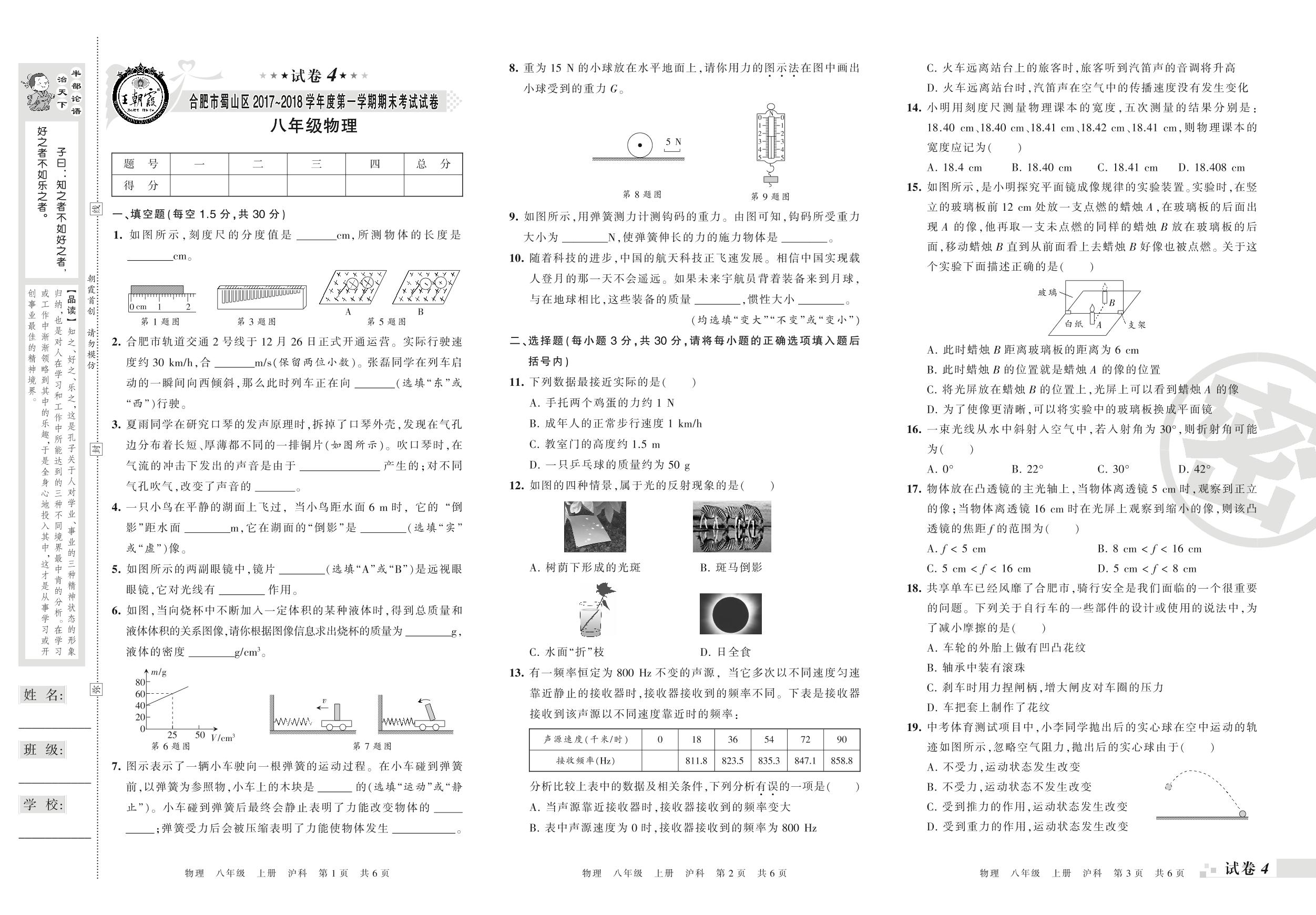 2017-2018学年第一学期合肥市蜀山区八年级物理试卷(沪科版)【4】