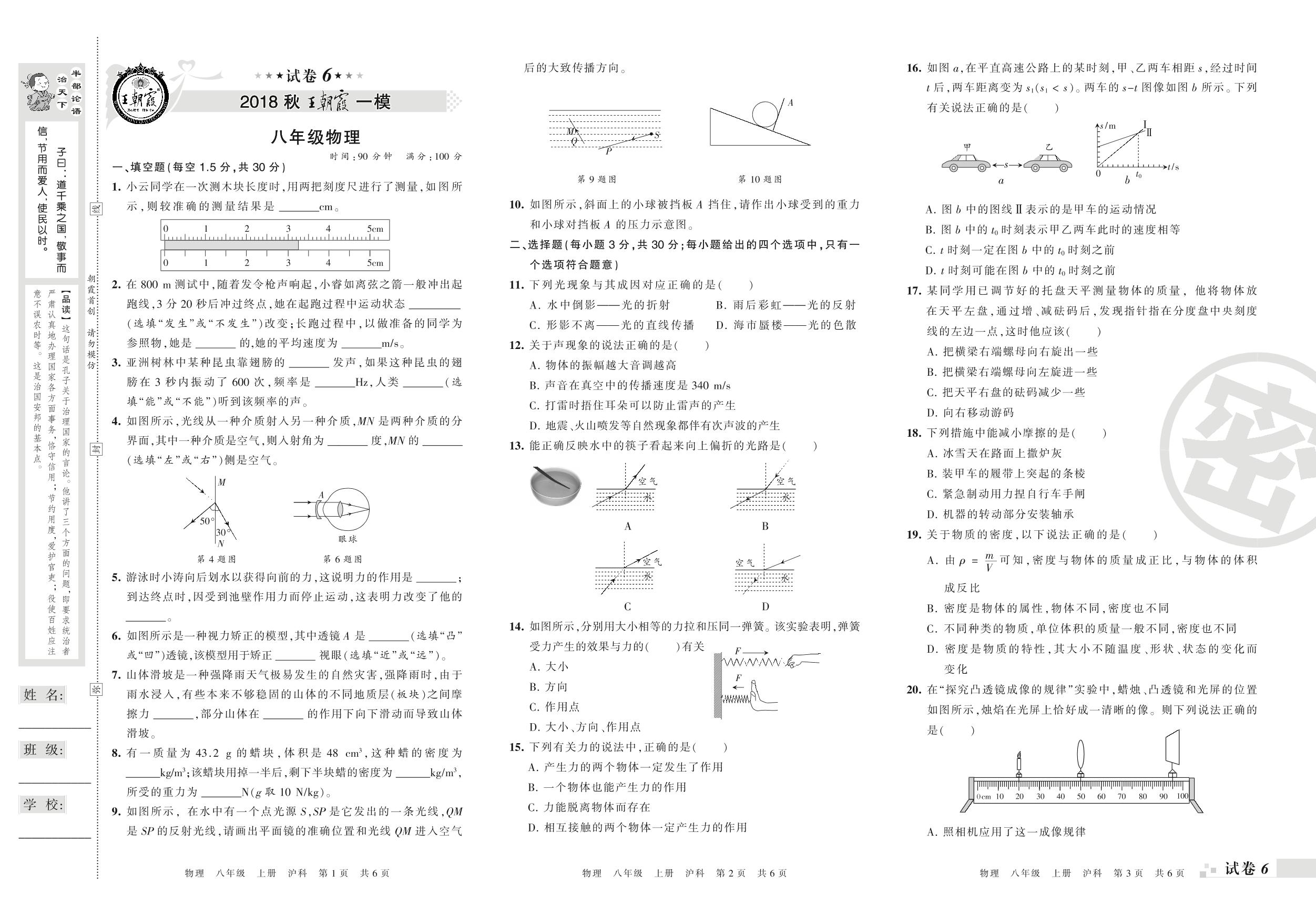 2018-2019学年第一学期王朝霞期末模拟卷八年级物理(沪科版)_R210810194206【6】