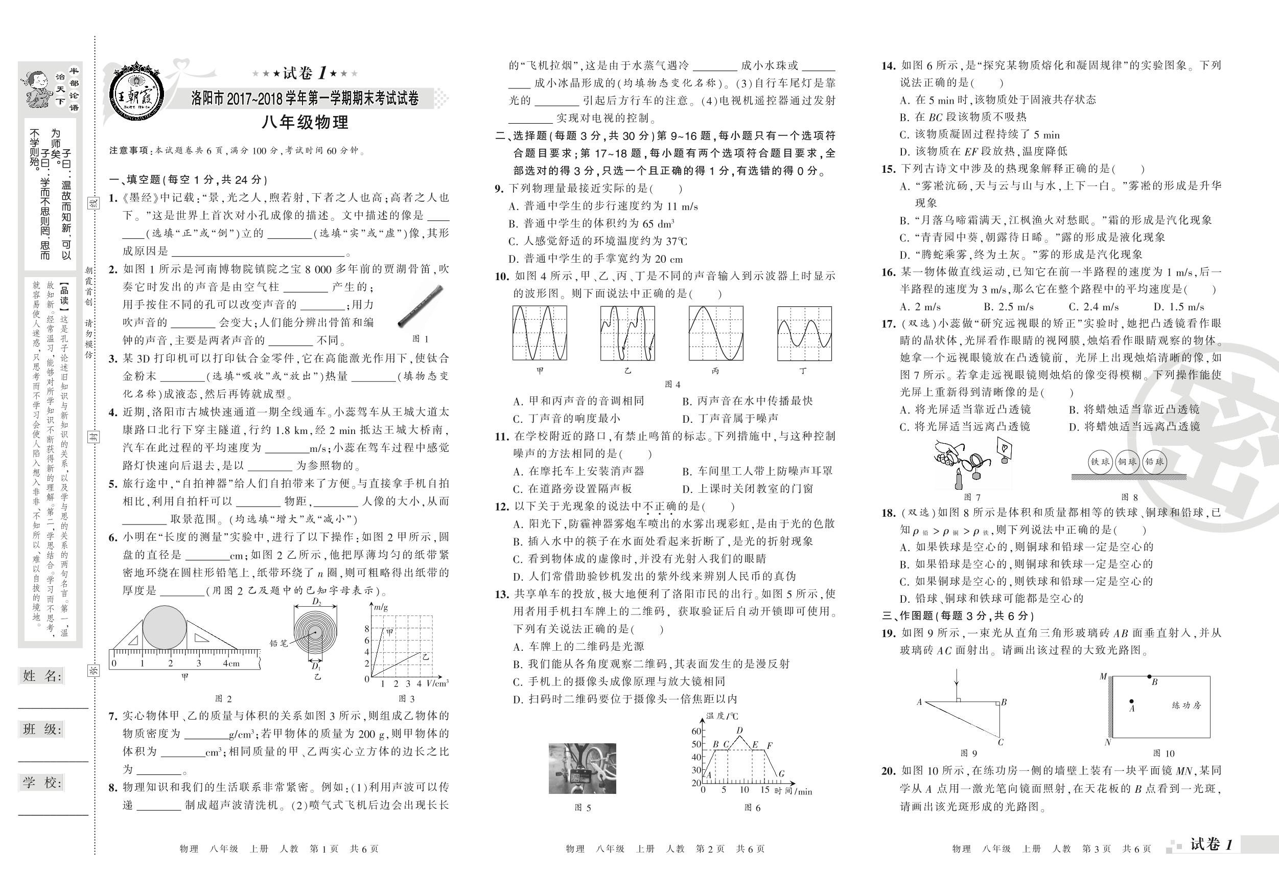 2017-2018学年第一学期洛阳市八年级物理试卷(人教版)【1】