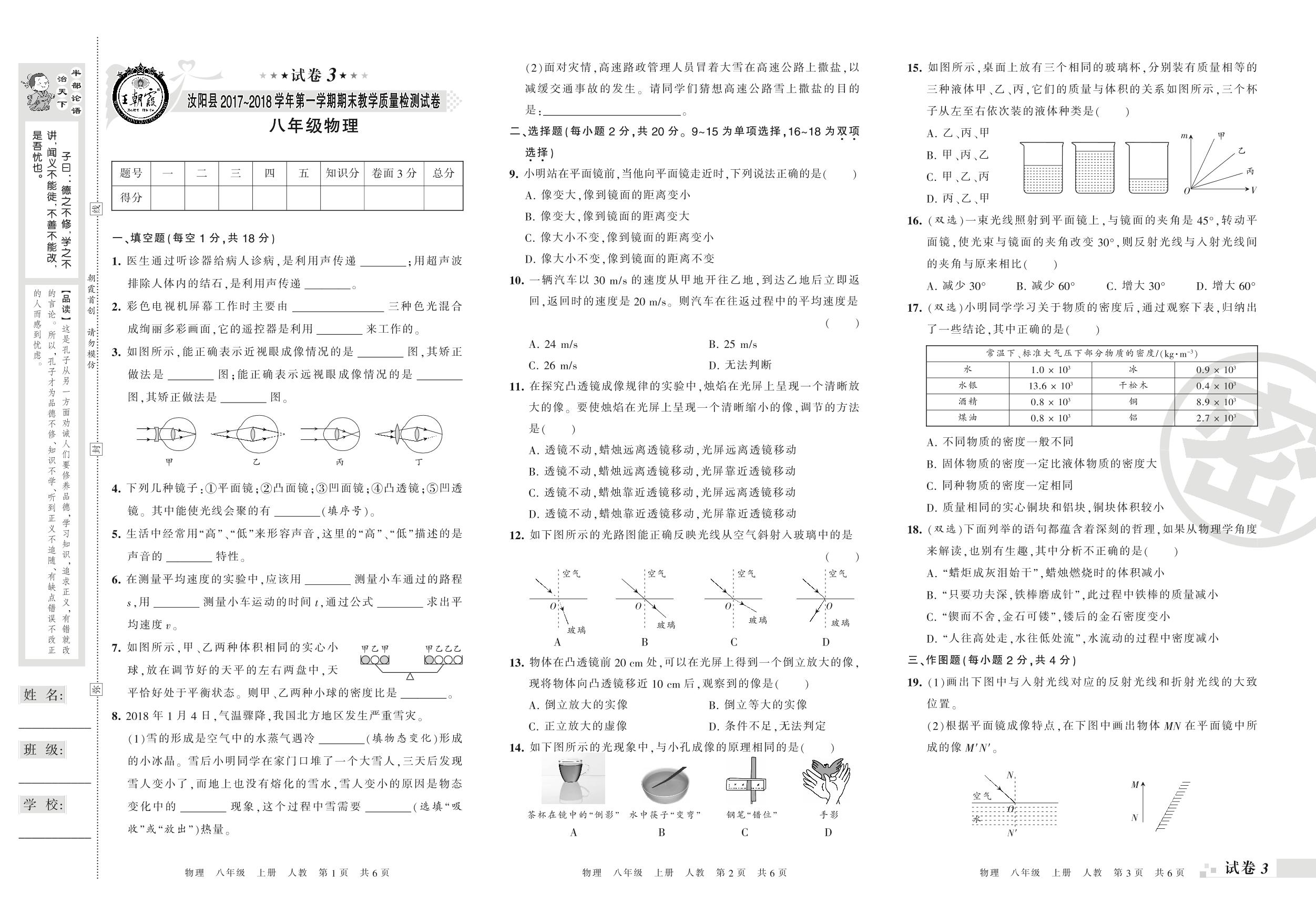 2017-2018学年第一学期洛阳市汝阳县八年级物理试卷(人教版)【3】