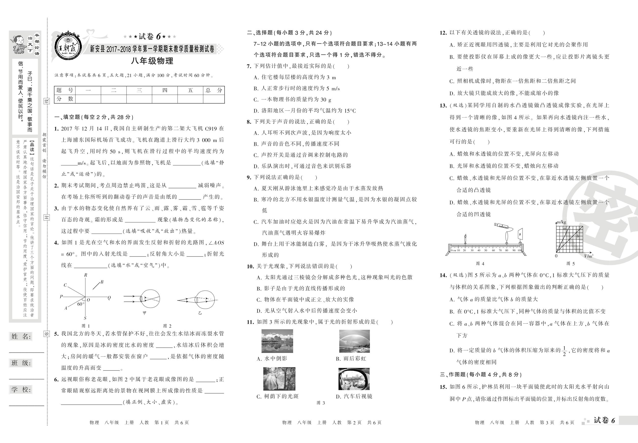 2017-2018学年第一学期洛阳市新安县八年级物理试卷(人教版)【6】