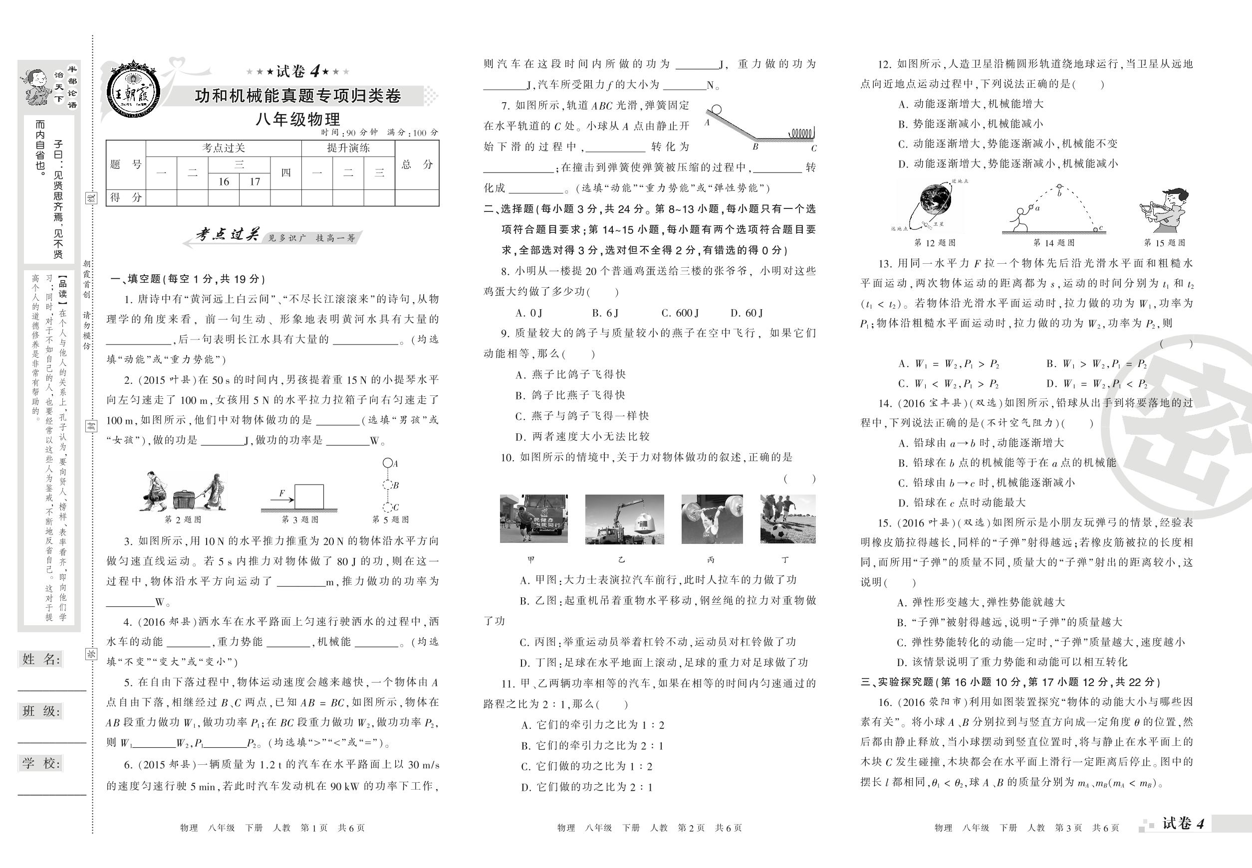 王朝霞期末专项卷——功和机械能真题专项归类卷八年级下册物理(人教版)【4】