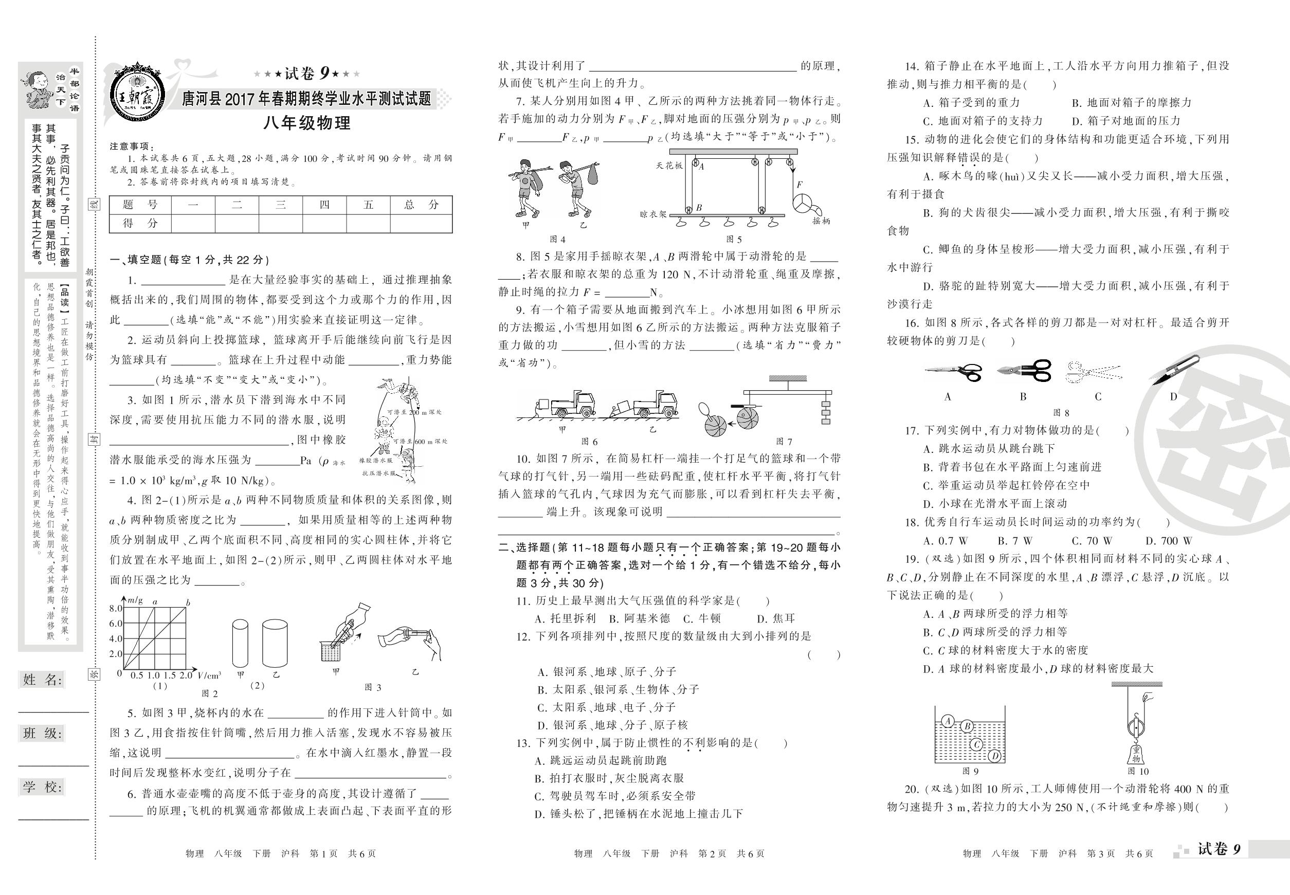 2016-2017学年第二学期南阳市唐河县八年级物理试卷(沪科版)【9】