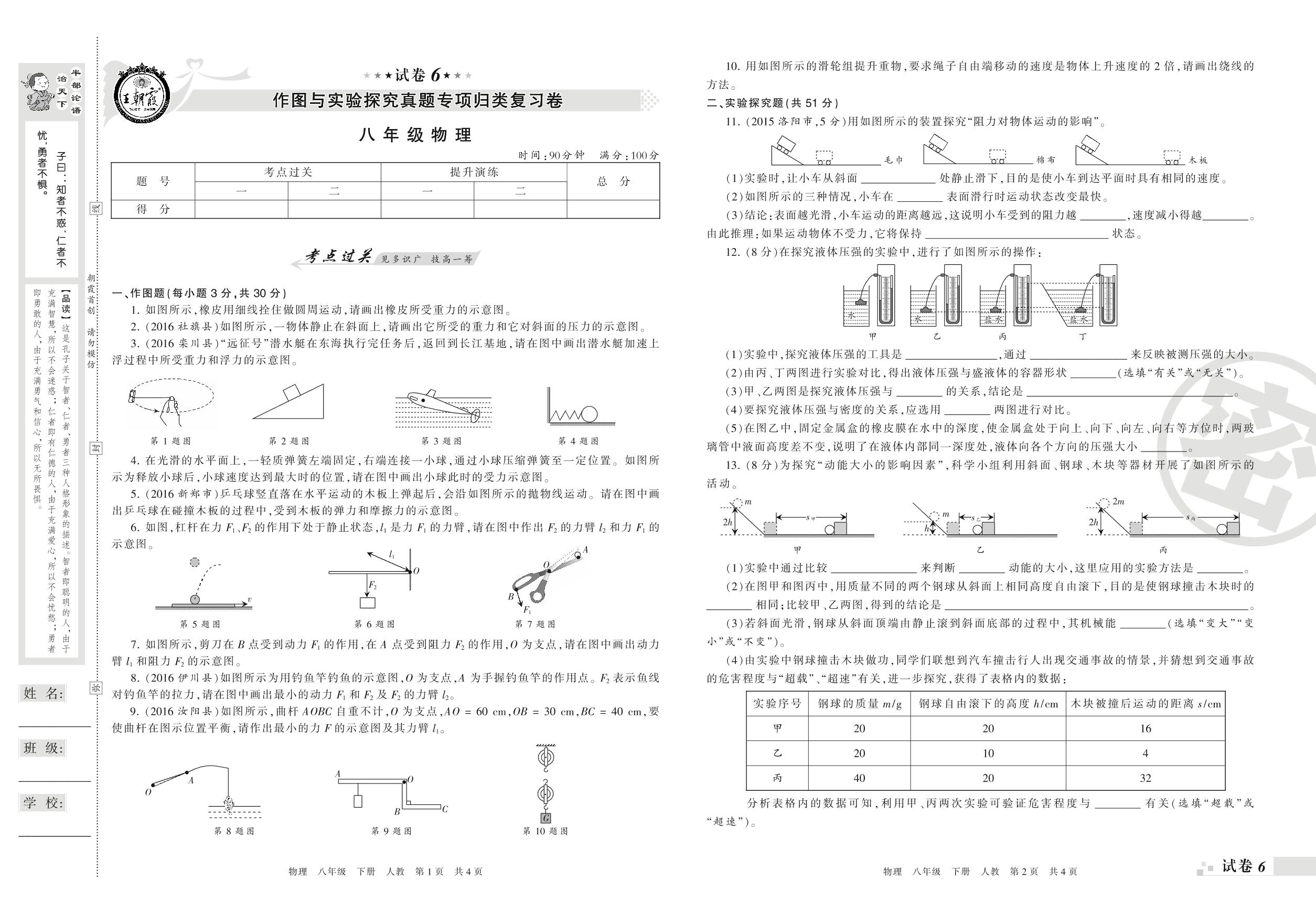 王朝霞期末专项卷——作图与实验探究真题专项归类复习卷八年级下册物理(人教版)【6】