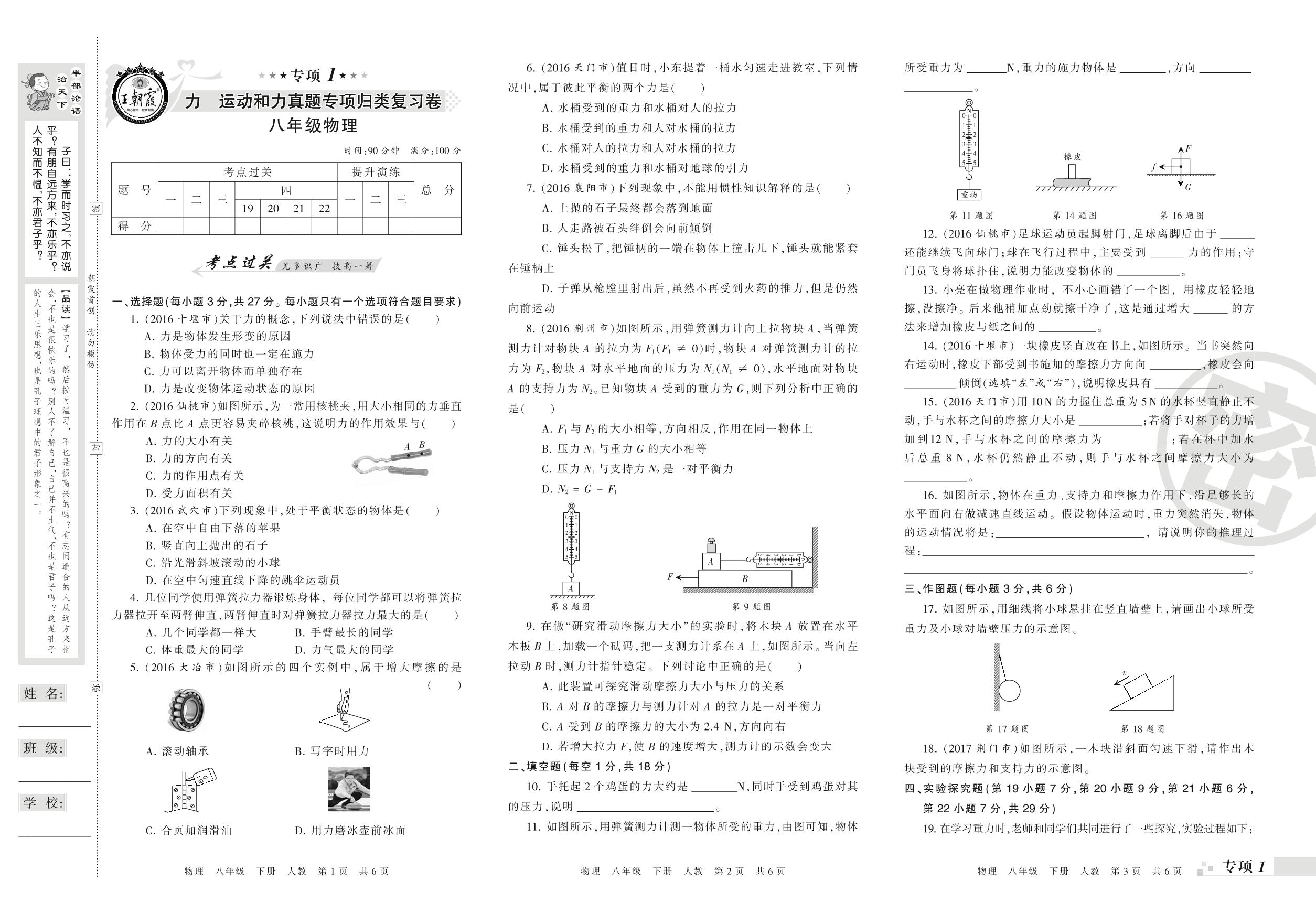 王朝霞期末专项卷——力 运动和力真题专项归类复习卷八年级下册物理(人教版)【0】