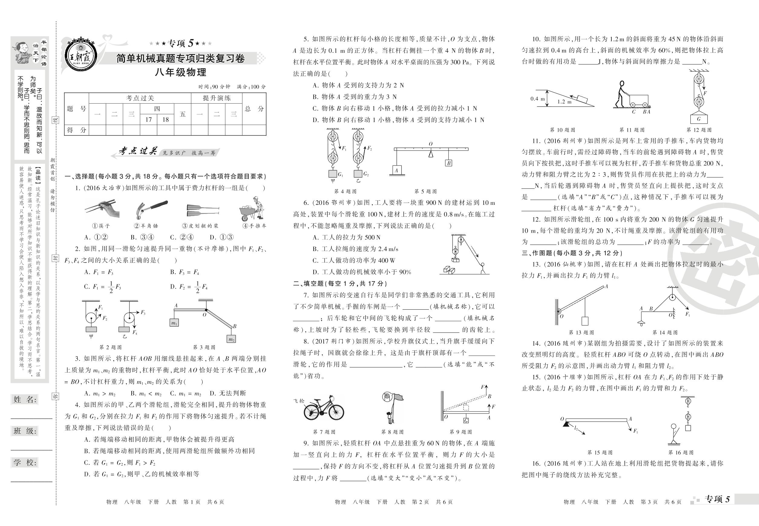 王朝霞期末专项卷——简单机械真题专项归类复习卷八年级下册物理(人教版)【0】