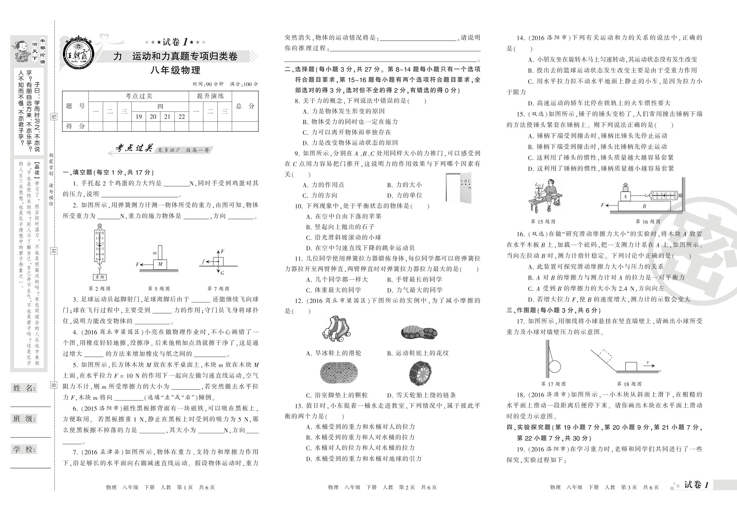 王朝霞期末专项卷——力 运动和力真题专项归类卷八年级下册物理(人教版)_R210810195237【1】