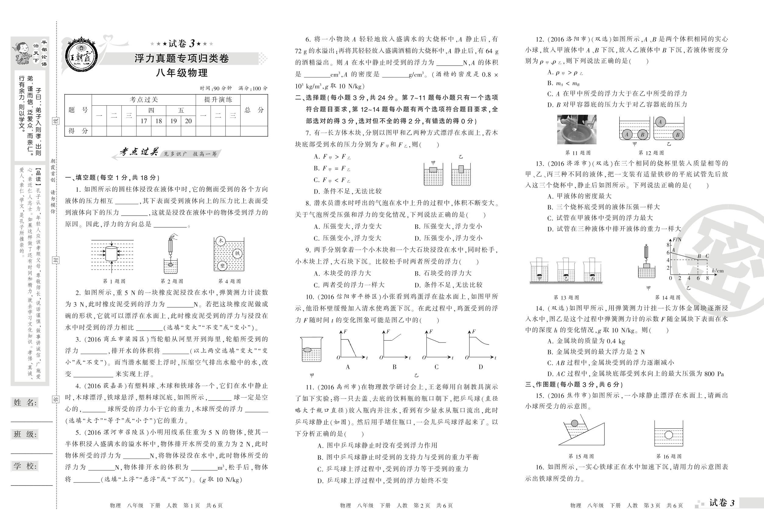 王朝霞期末专项卷——浮力真题专项归类卷八年级下册物理(人教版)_R210810195248【3】