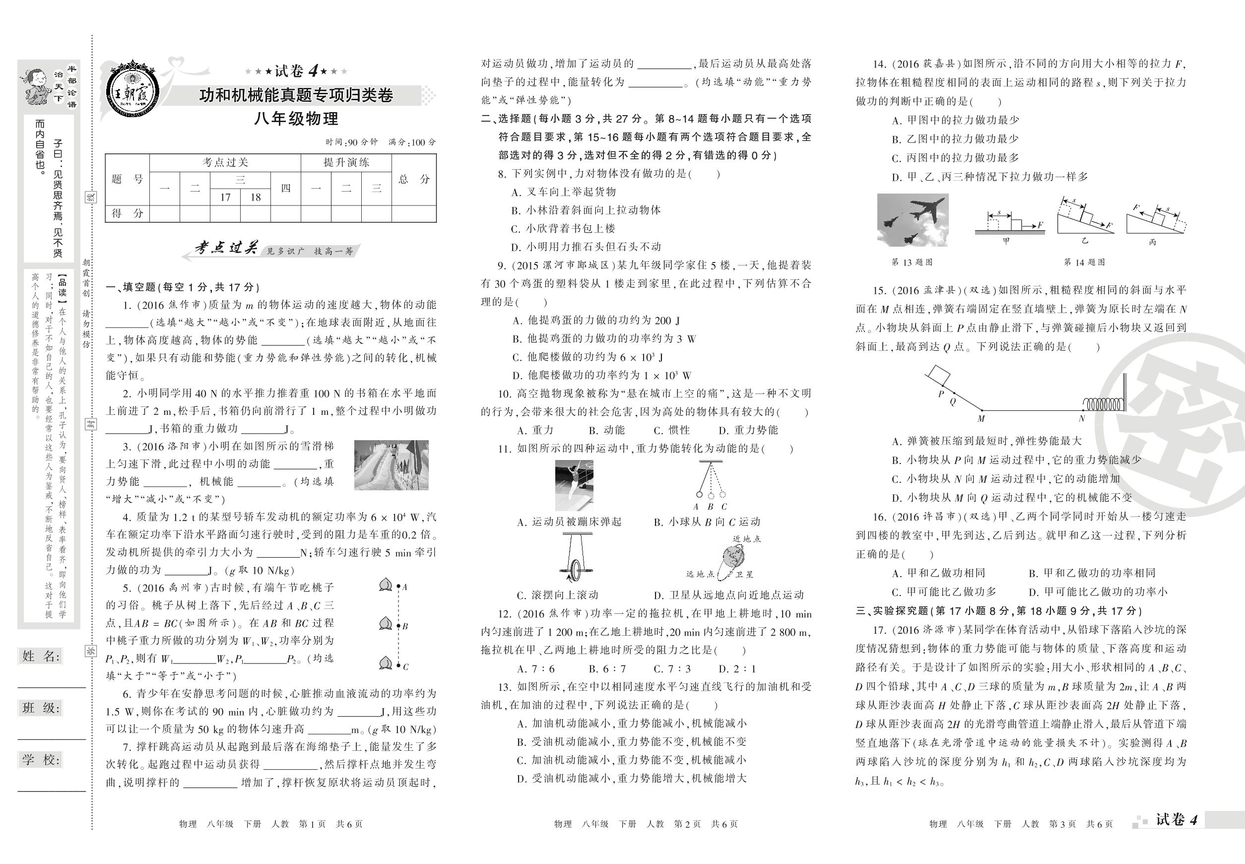 王朝霞期末专项卷——功和机械能真题专项归类卷八年级下册物理(人教版)_R210810195254【4】