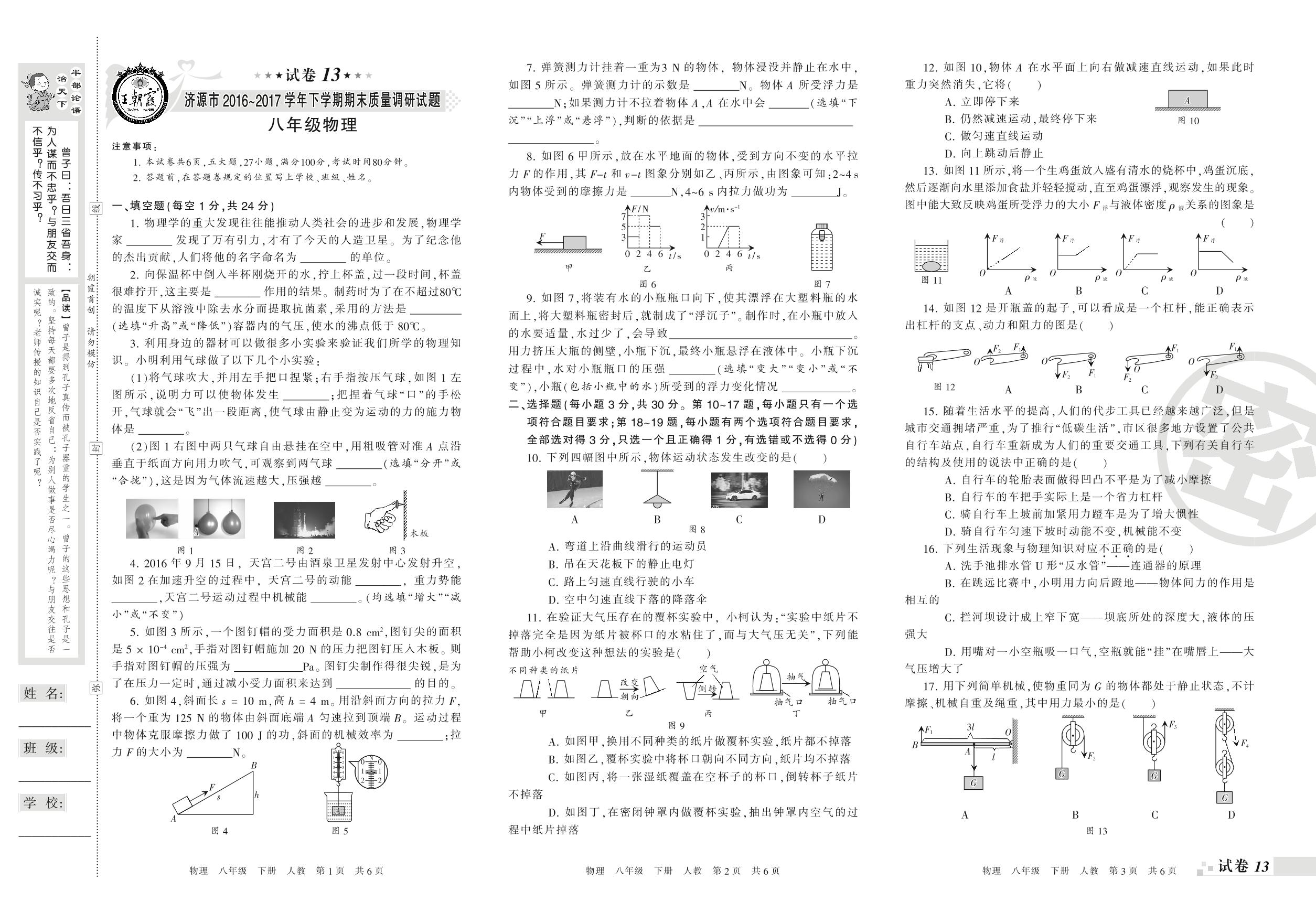 2016-2017学年第二学期济源市八年级物理试卷(人教版)【13】