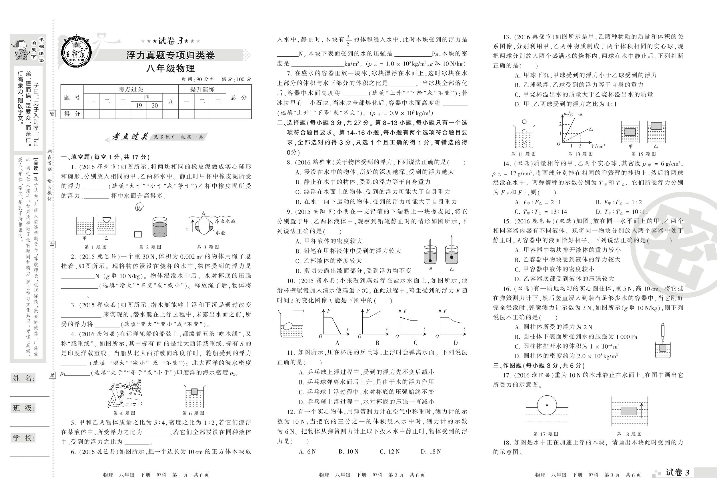 王朝霞期末专项卷——浮力真题专项归类卷八年级下册物理(沪科版)【3】