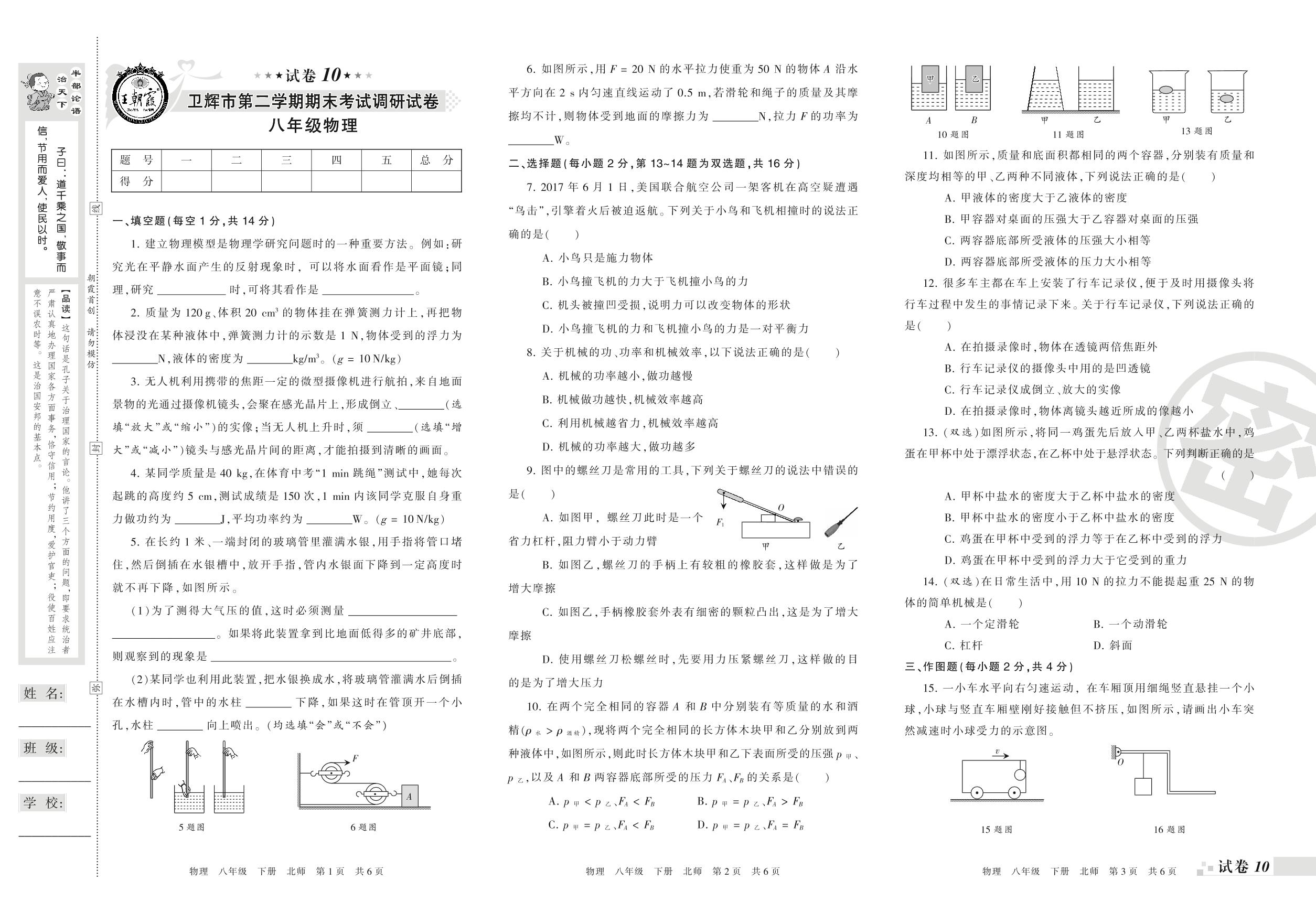 2016-2017学年第二学期卫辉市八年级物理试卷(北师版)【10】