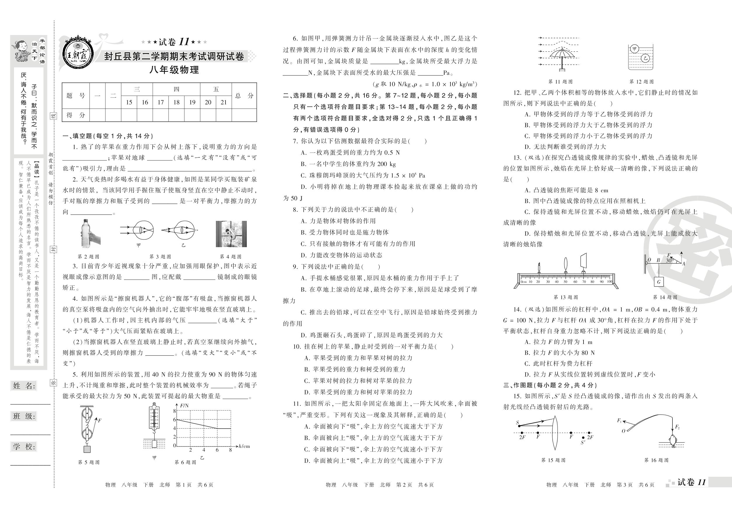 2016-2017学年第二学期新乡市封丘县八年级物理试卷(北师版)【11】