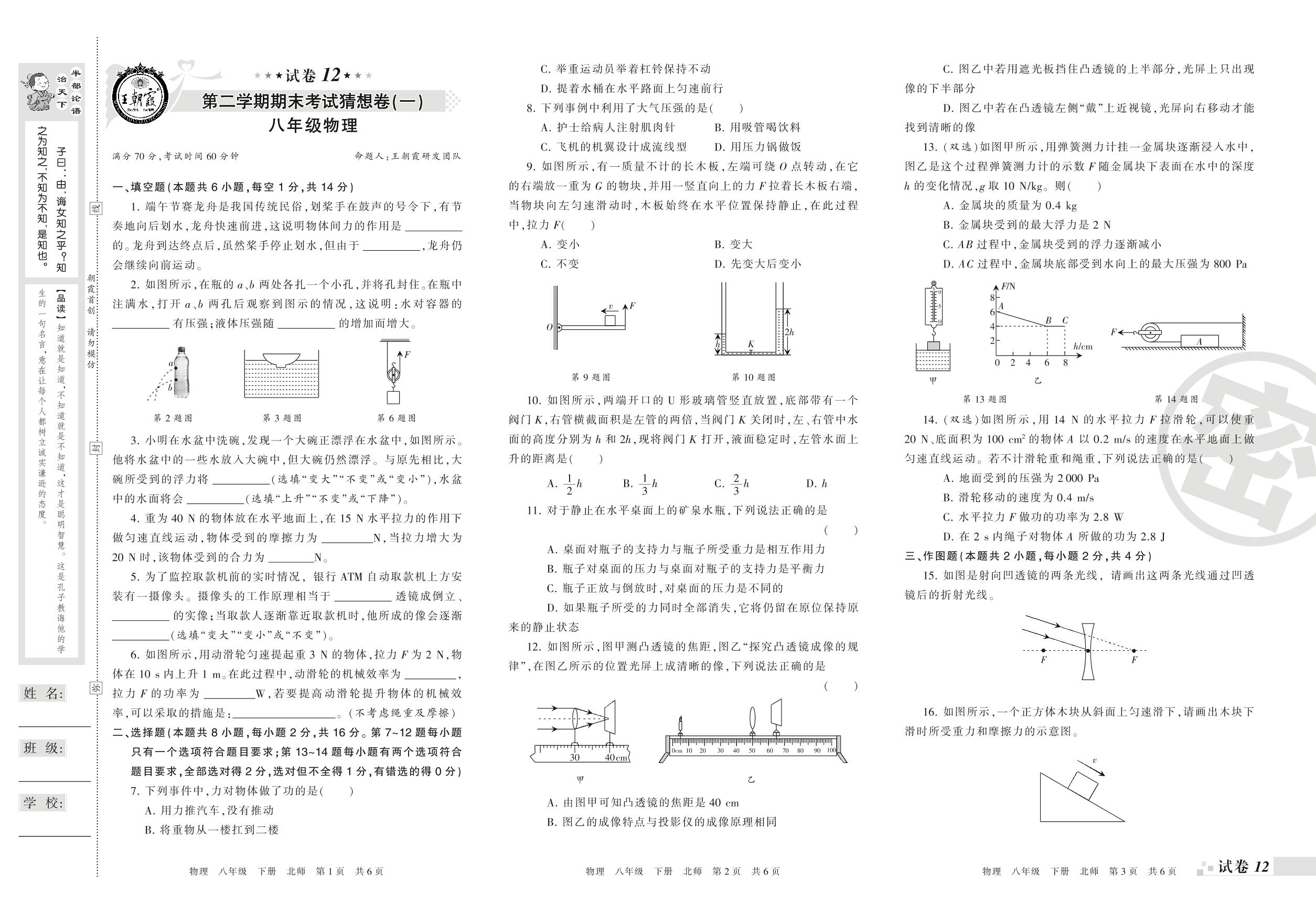 2017-2018学年第二学期期末考试猜想卷(一)八年级物理(北师版)【12】