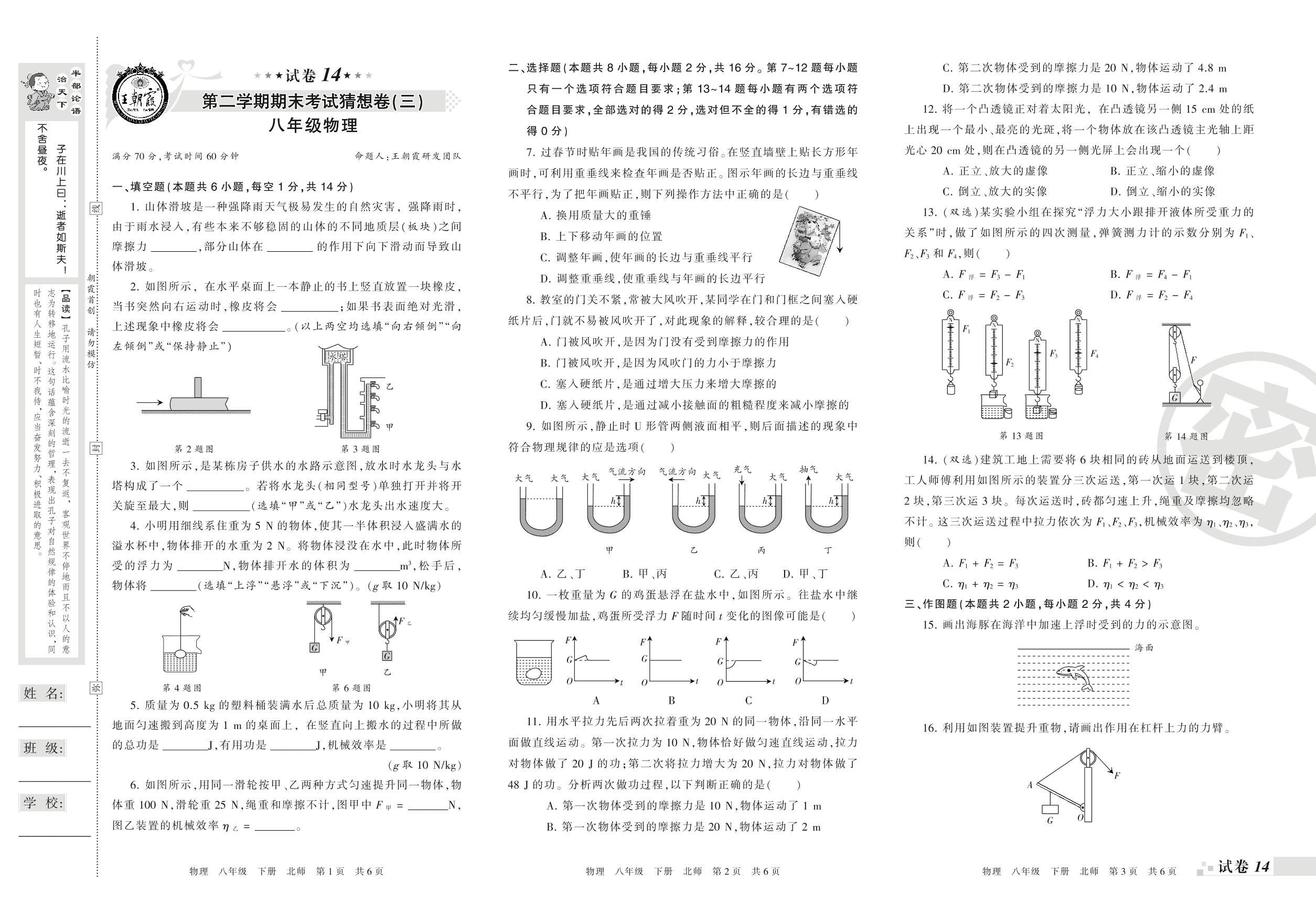 2017-2018学年第二学期期末考试猜想卷(三)八年级物理(北师版)【14】