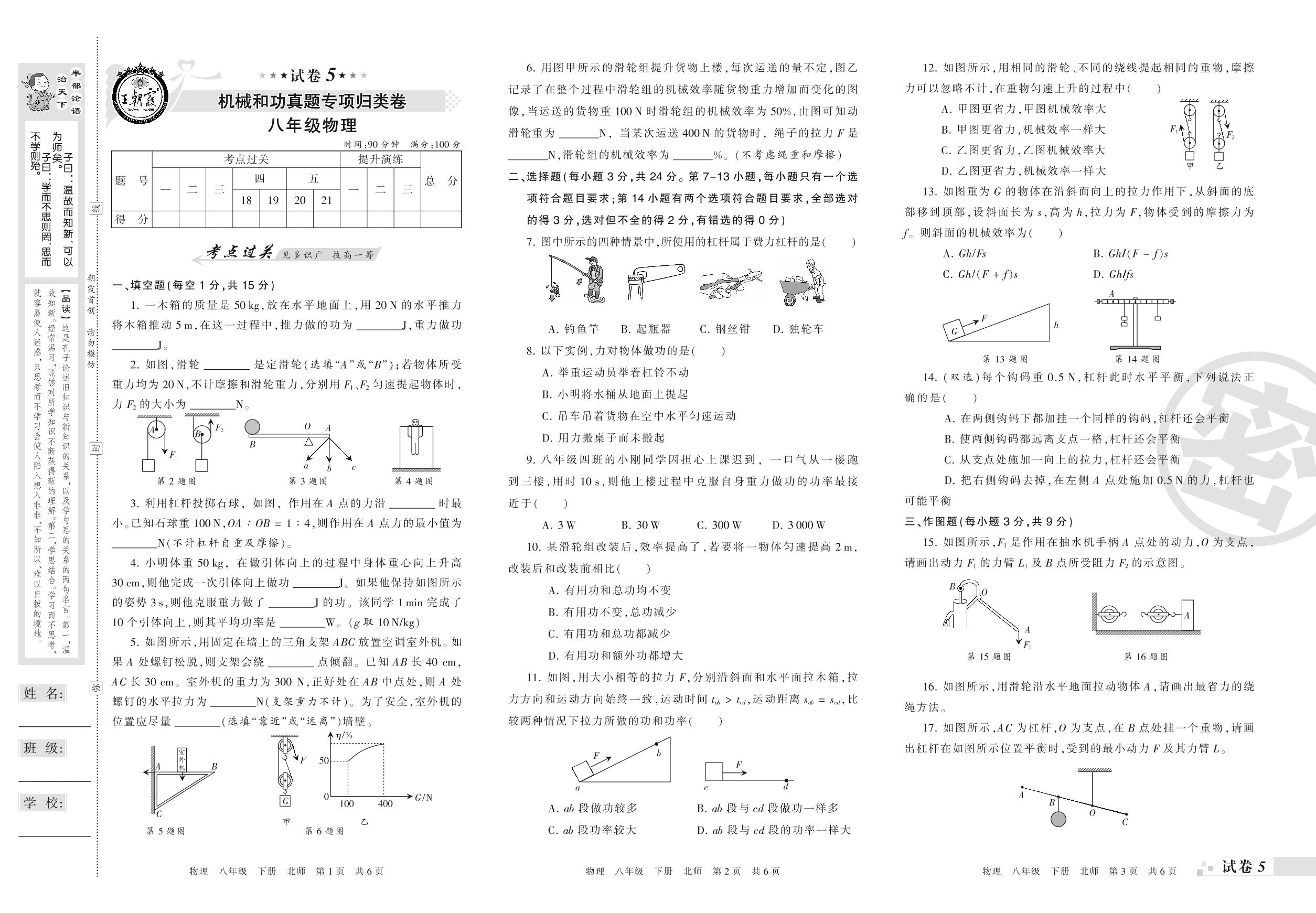王朝霞期末专项卷——机械和功真题专项归类卷八年级下册物理(北师版)【5】