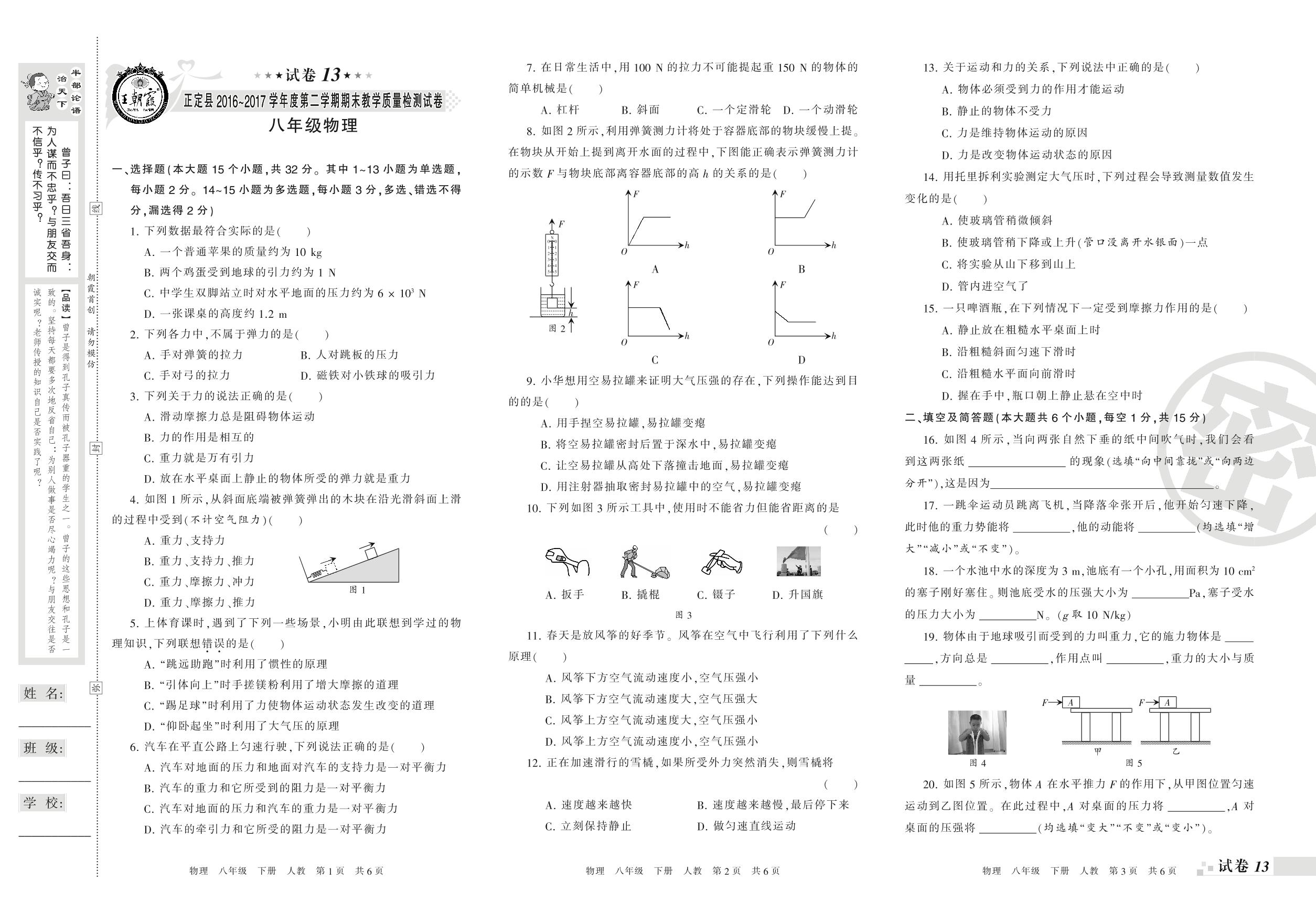 2016-2017学年第二学期石家庄市正定县八年级物理试卷(人教版)【13】