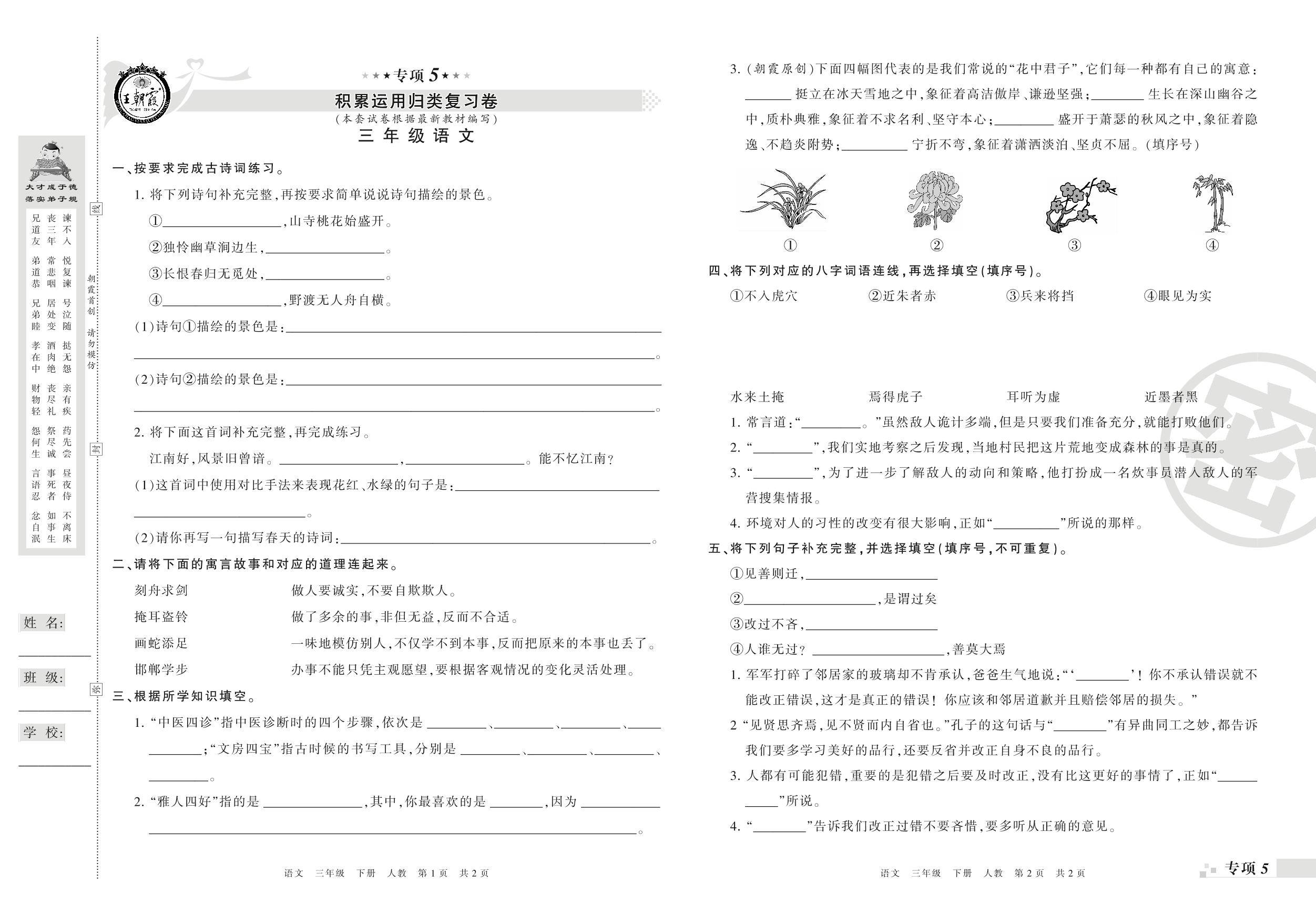 王朝霞期末专项卷——积累运用、课内阅读归类复习三年级下册语文(人教版)_R21080194334【0】